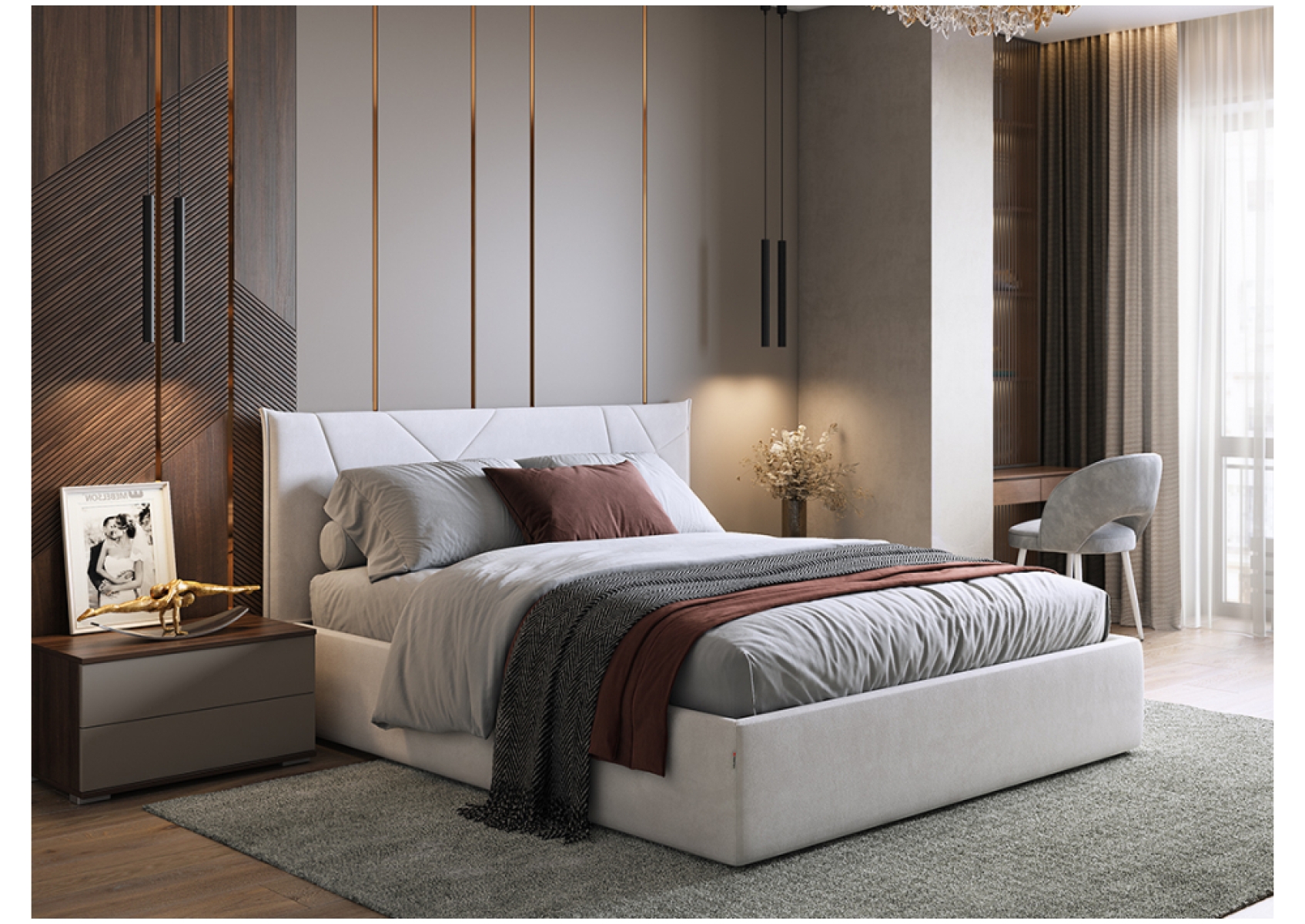 Двуспальная кровать Квест 160х200 с ПМ велюр галька