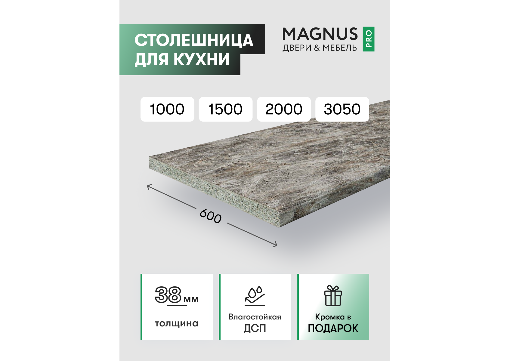 Цена за 38*1000*600, Остальные размеры опционально под заказ 38*1500*600, 38*2000*600, 38*3050*600