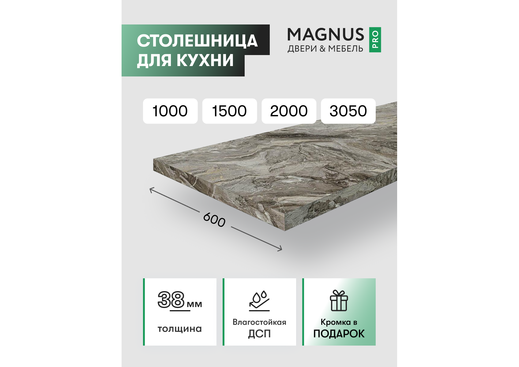 Кухонная столешница для самостоятельного раскроя и кромления, изготовлена по технологии "постформинг".