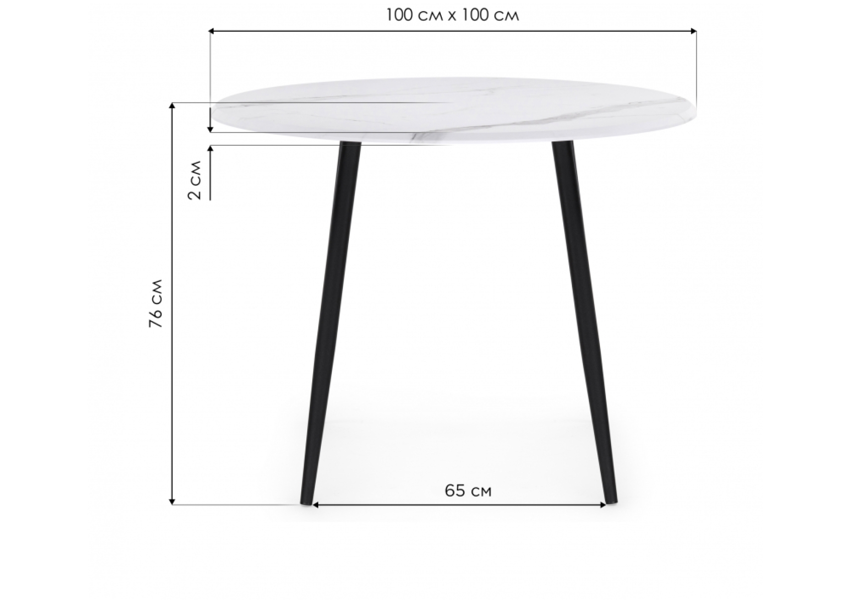 Деревянный стол Абилин 100х76 мрамор белый / черный матовый