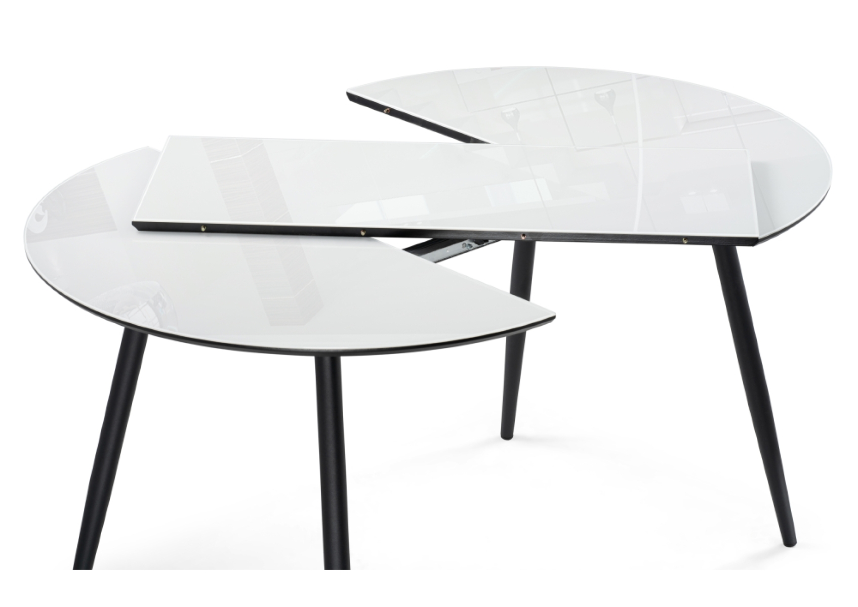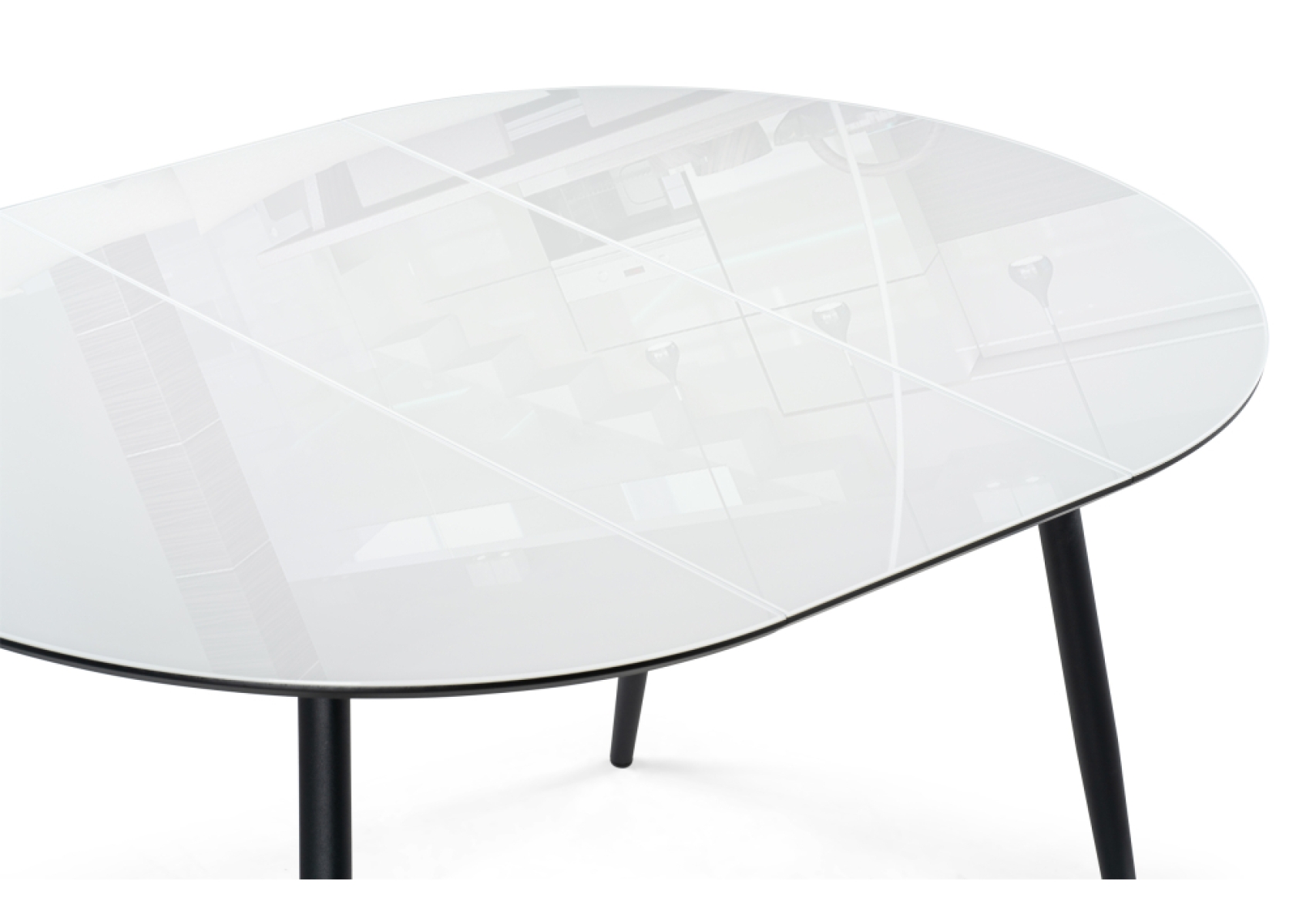 Стеклянный стол Абилин 100(140)х100х76 ультра белое стекло / черный / черный матовый