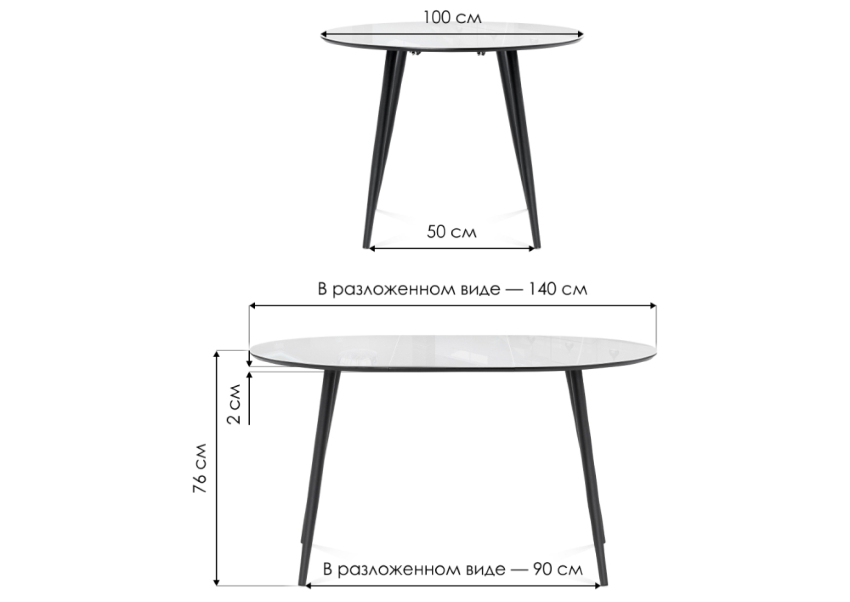 Длина стола в разложенном виде