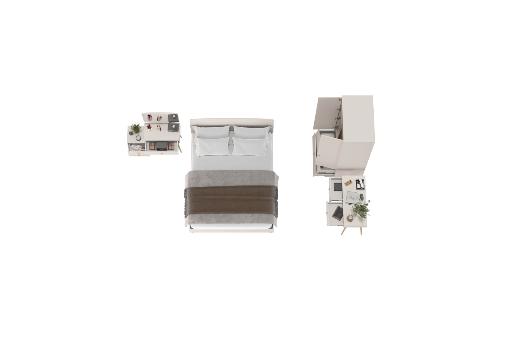 Туалетный столик Афина с кроватью 1600 со шкафом и столиком. Цвет - кашемир серый. Количество мебели - 4 шт. Комплектация включает кровать 1600 Афина 4-22901, туалетный столик Афина 4-25904, трюмо с зеркалом Афина 4-25901 и шкаф 2-х дверный Афина 4-75901.