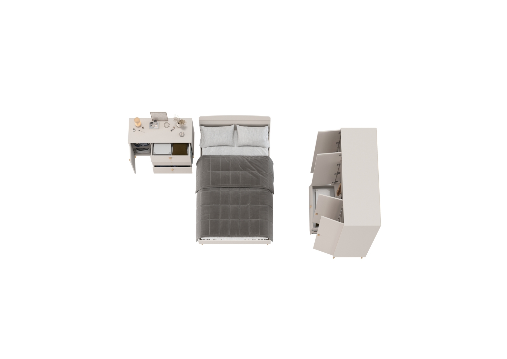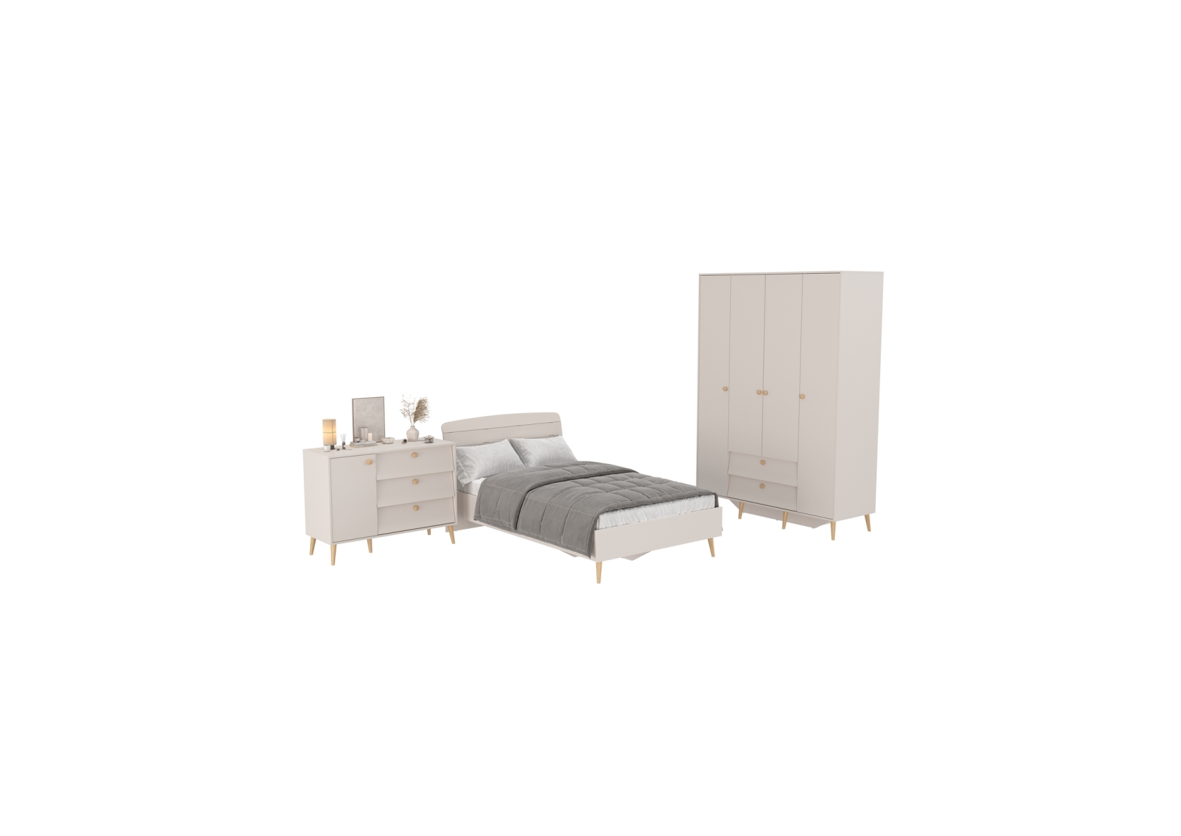 Шкаф-комод 4-х дверный с кроватью 1200 Афина и комодом с дверкой. Цвет - кашемир серый. Количество мебели - 3 шт. Комплектация включает кровать 1200 Афина 4-22905, комод с дверкой и тремя ящиками Афина 4-44901 и шкаф 4-х дверный Афина 4-75930.