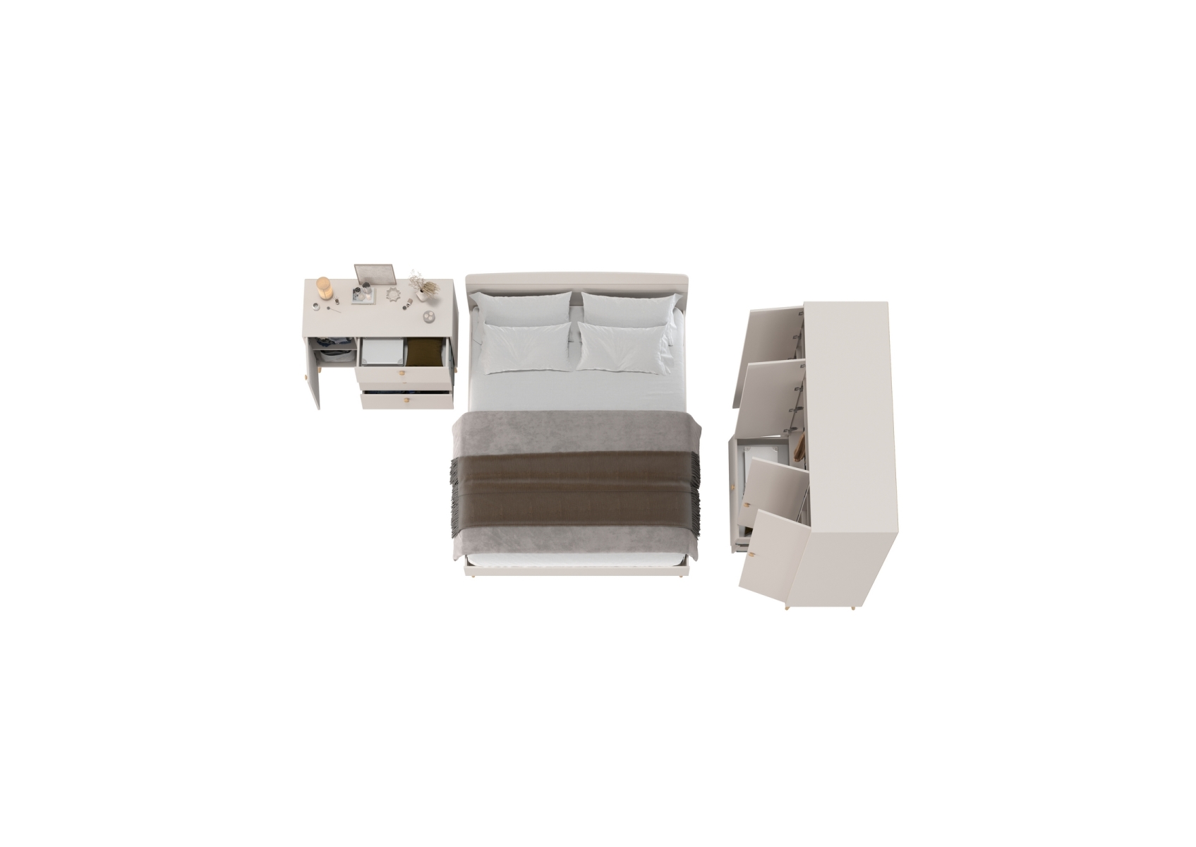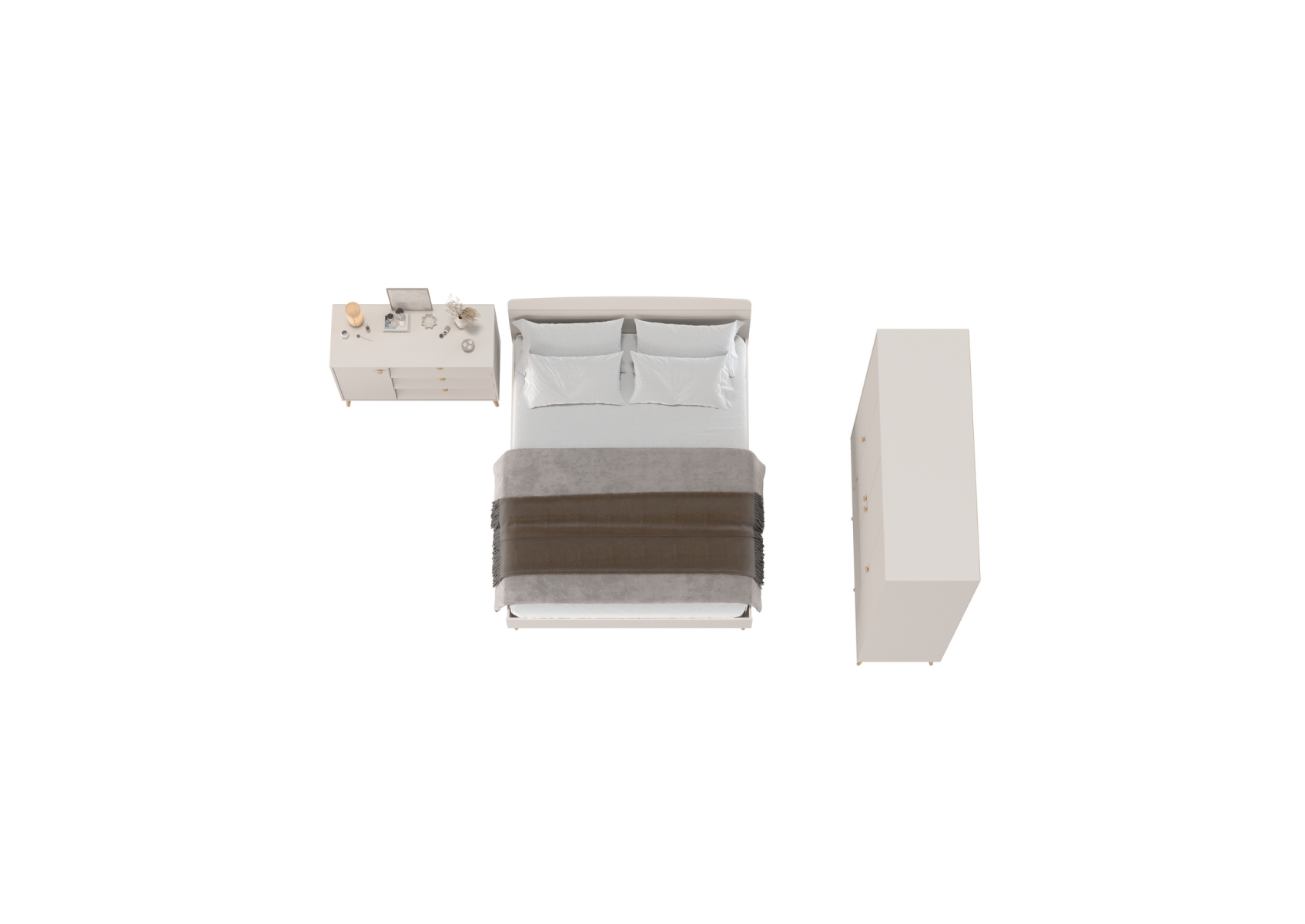 Шкаф-комод 4-х дверный с кроватью 1600 Афина и комодом с дверкой. Цвет - кашемир серый. Количество мебели - 3 шт. Комплектация включает кровать 1600 Афина 4-22901, комод с дверкой и тремя ящиками Афина 4-44901 и шкаф 4-х дверный Афина 4-75930.
