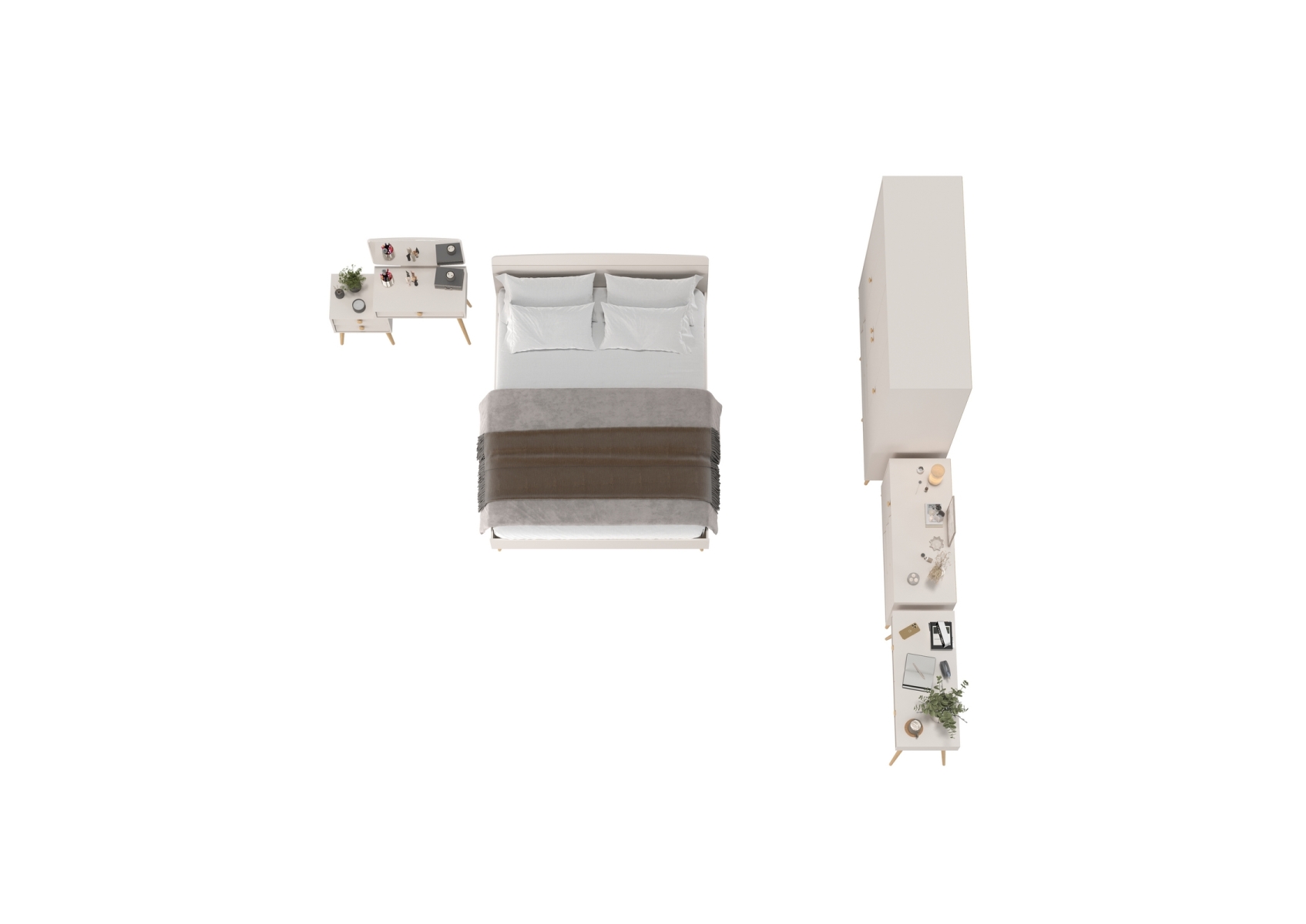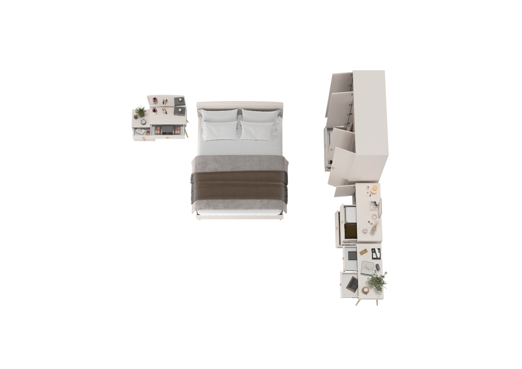 Набор корпусной мебели в спальню Афина с кроватью 1600. Цвет - кашемир серый. Количество мебели - 5 шт. Комплектация включает кровать 1600 Афина 4-22901, туалетный столик Афина 4-25904, трюмо с зеркалом Афина 4-25901, комод с дверкой и тремя ящиками Афина 4-44901 и шкаф 4-х дверный Афина 4-75930.