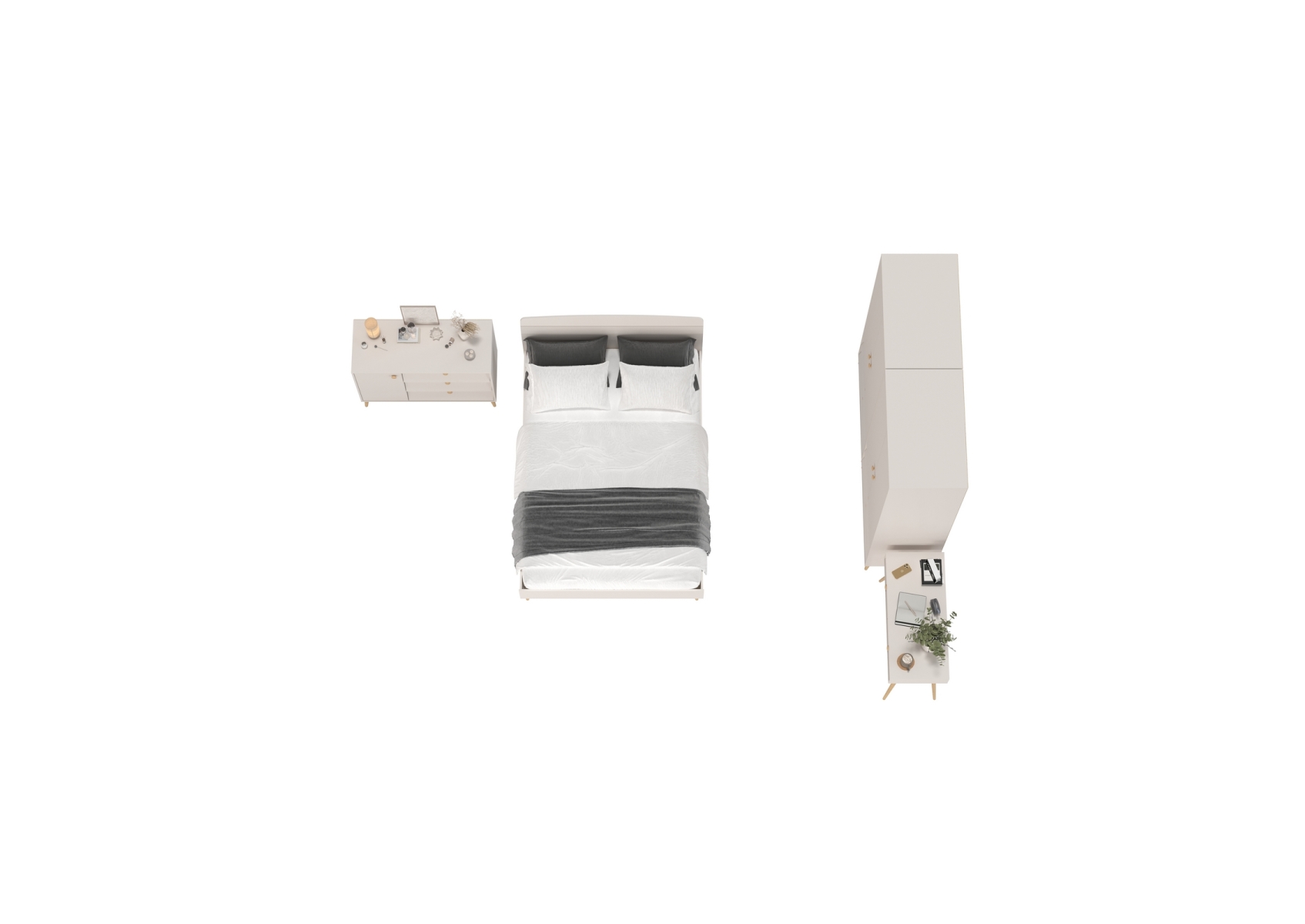 Афина Спальня со спальным местом 1400. Цвет - кашемир серый. Количество мебели - 5 шт. Комплектация включает кровать 1400 Афина 4-22911, туалетный столик Афина 4-25904, комод с дверкой и тремя ящиками Афина 4-44901 и два шкафа 2-х дверных Афина 4-75901.