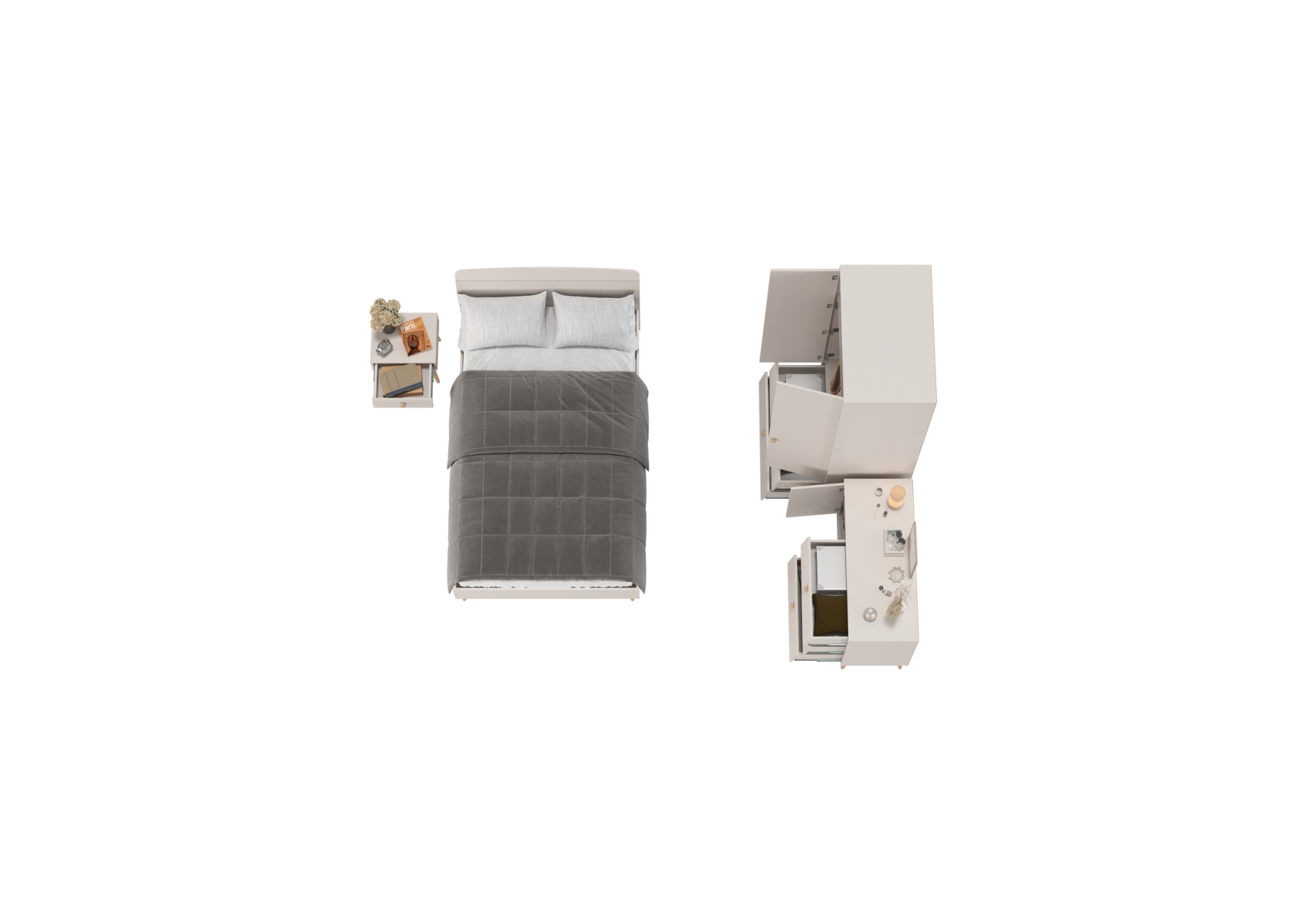 Кровать 1200 Афина с комодом и двухдверным шкафом Афина. Цвет - кашемир серый. Количество мебели - 4 шт. Спальное место размером 1200х2000 мм обеспечивает комфортный отдых. Комплектация включает кровать 1200 Афина 4-22905, тумбу прикроватную Афина 4-09901, комод с дверкой и тремя ящиками Афина 4-44901 и шкаф 2-х дверный Афина 4-75901.