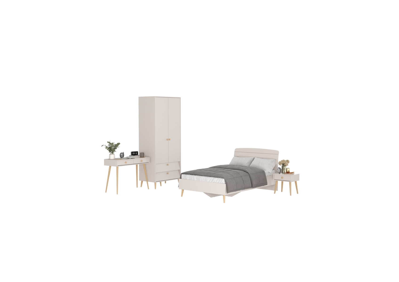 Столик в спальню с кроватью 1200 Афина с тумбочкой и шкафом для одежды. Цвет - кашемир серый. Количество мебели - 4 шт. Спальное место размером 1200х2000 мм обеспечивает комфортный отдых. Комплектация включает кровать 1200 Афина 4-22905, тумбу прикроватную Афина 4-09901, туалетный столик Афина 4-25904 и шкаф 2-х дверный Афина 4-75901.