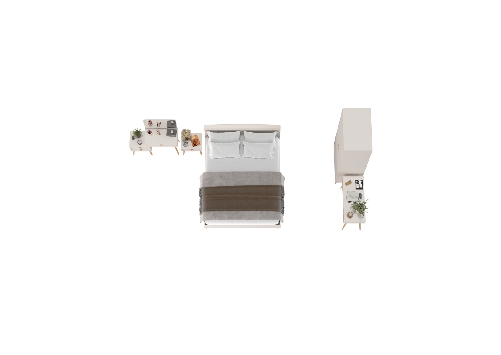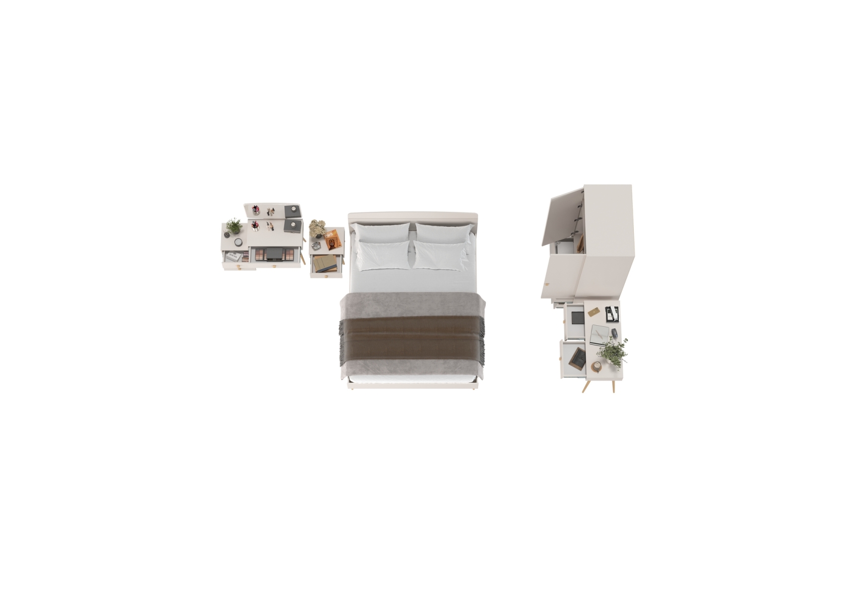 Модульная мебель для спальни Афина с кроватью со спальным местом на 1600. Цвет - кашемир серый. Количество мебели - 6 шт. Комплектация включает кровать 1600 Афина 4-22901, тумбу прикроватную Афина 4-09901, туалетный столик Афина 4-25904, трюмо с зеркалом Афина 4-25901 и шкаф 2-х дверный Афина 4-75901.