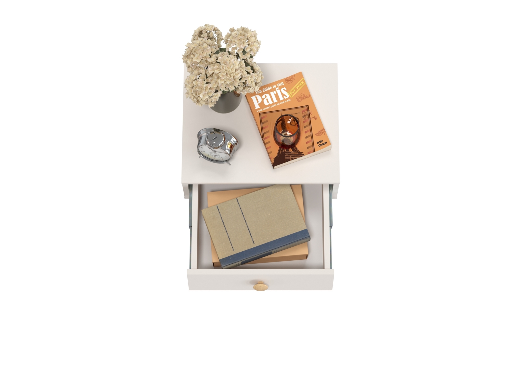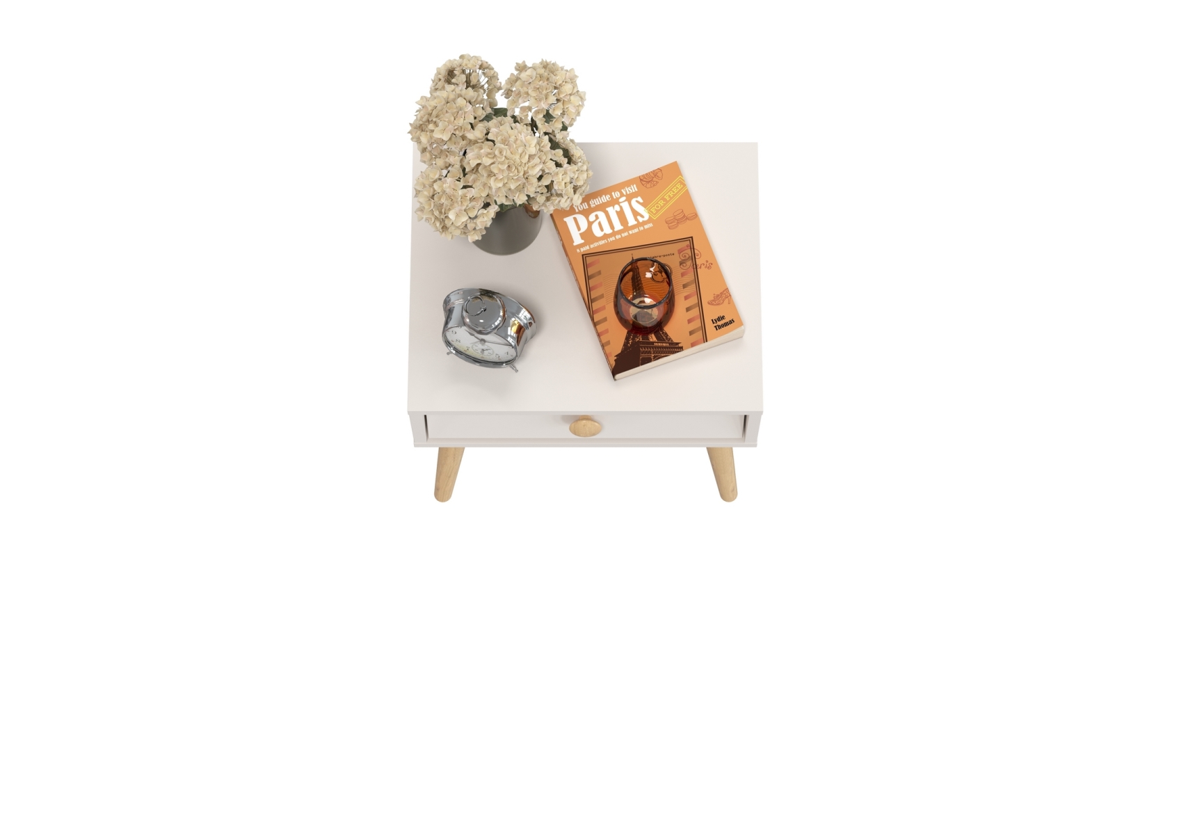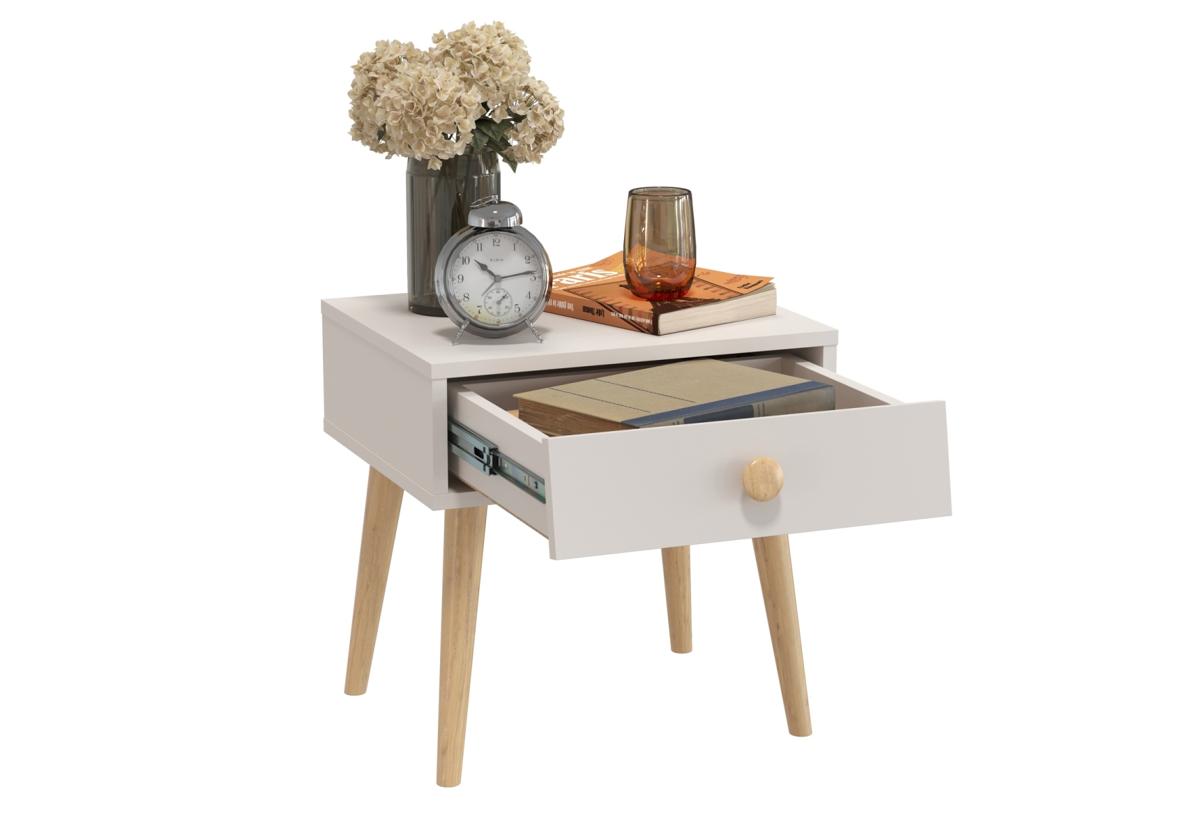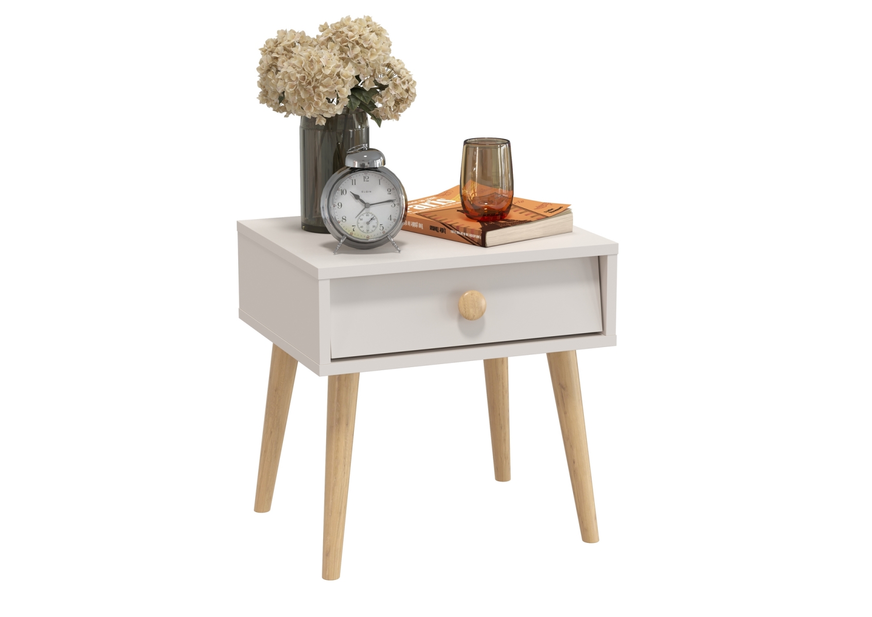 Тумба прикроватная Афина 4-09901. Цвет - кашемир серый. Габариты (ШхГхВ) 45х37х45 см. Тумба оснащена просторным выдвижным ящиком на шариковых направляющих полного выдвижения, что обеспечивает удобство и плавность в использовании. Высокие опоры из массива бука, высотой 30 см, придают конструкции легкость и делают её удобной для уборки.