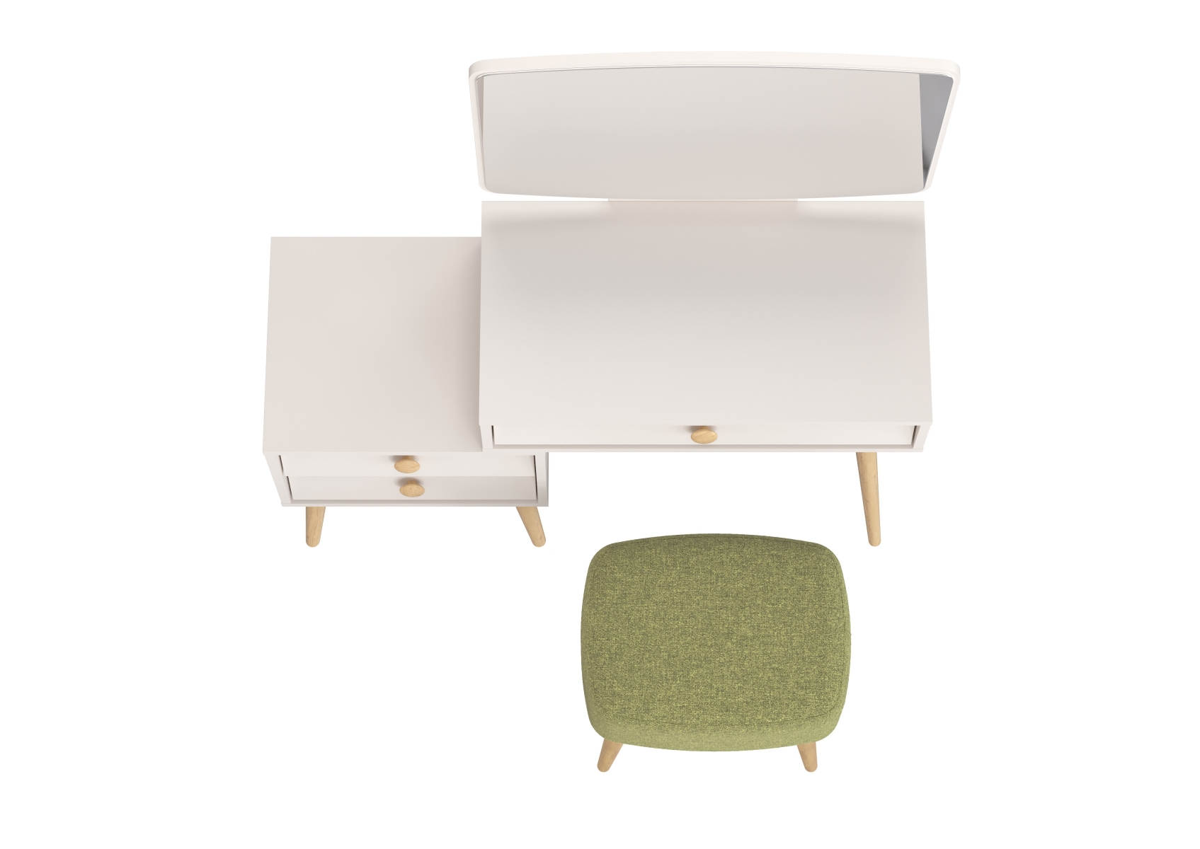 Афина Спальня 4-25901М1к.с. Трюмо + Банкетка 6-5135ТКШзел Полли, цвет кашемир серый/ткань зелёная, ШхГхВ 105х38,6х129 + 44х34х45 см., универс. сб.