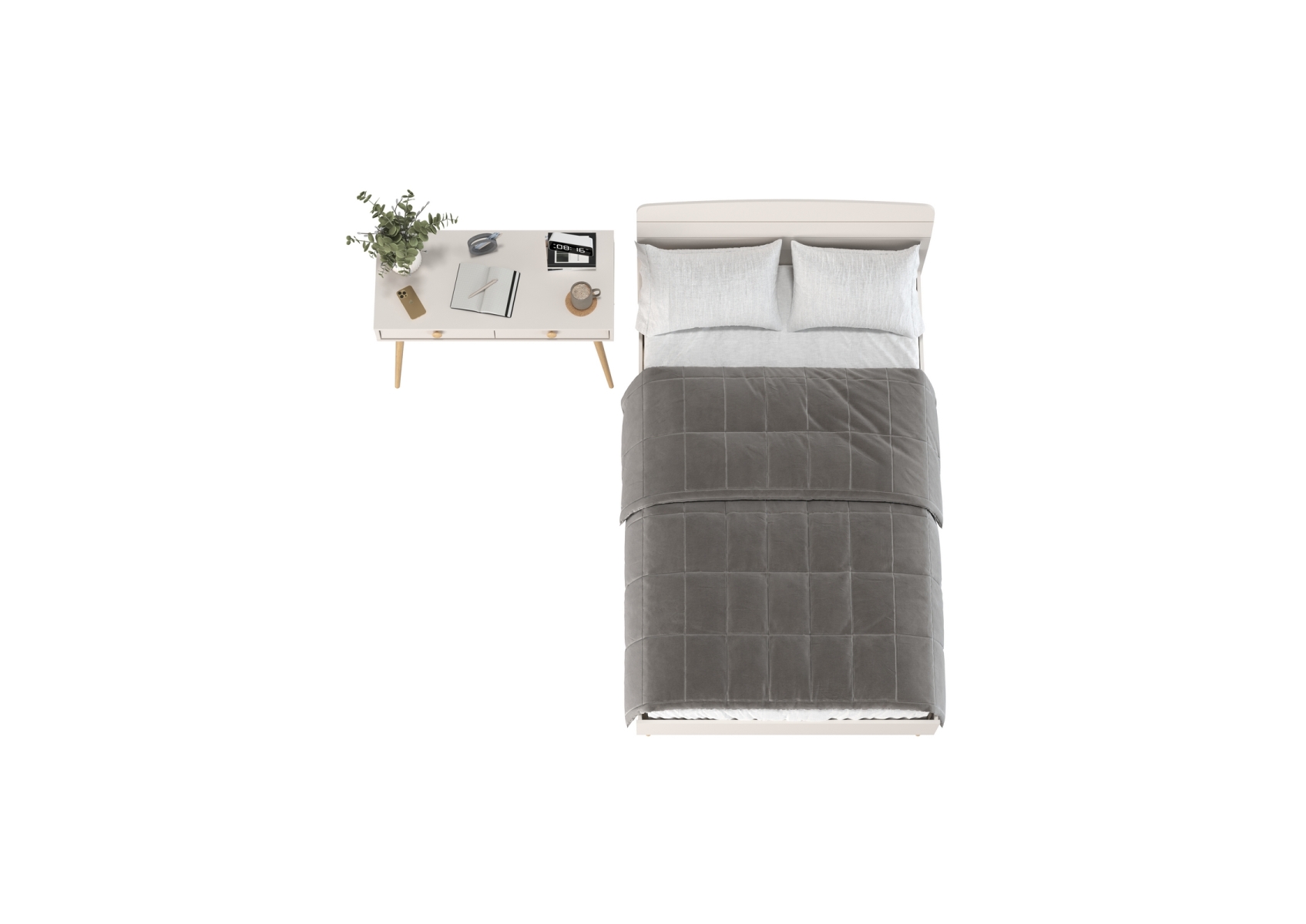 Афина Спальня Кровать 1200 + Стол, цвет кашемир серый, ШхГхВ 123,6х210,2х95,7 + 100х45х76 см., сп.м. 1200х2000 мм., б/м, основание есть