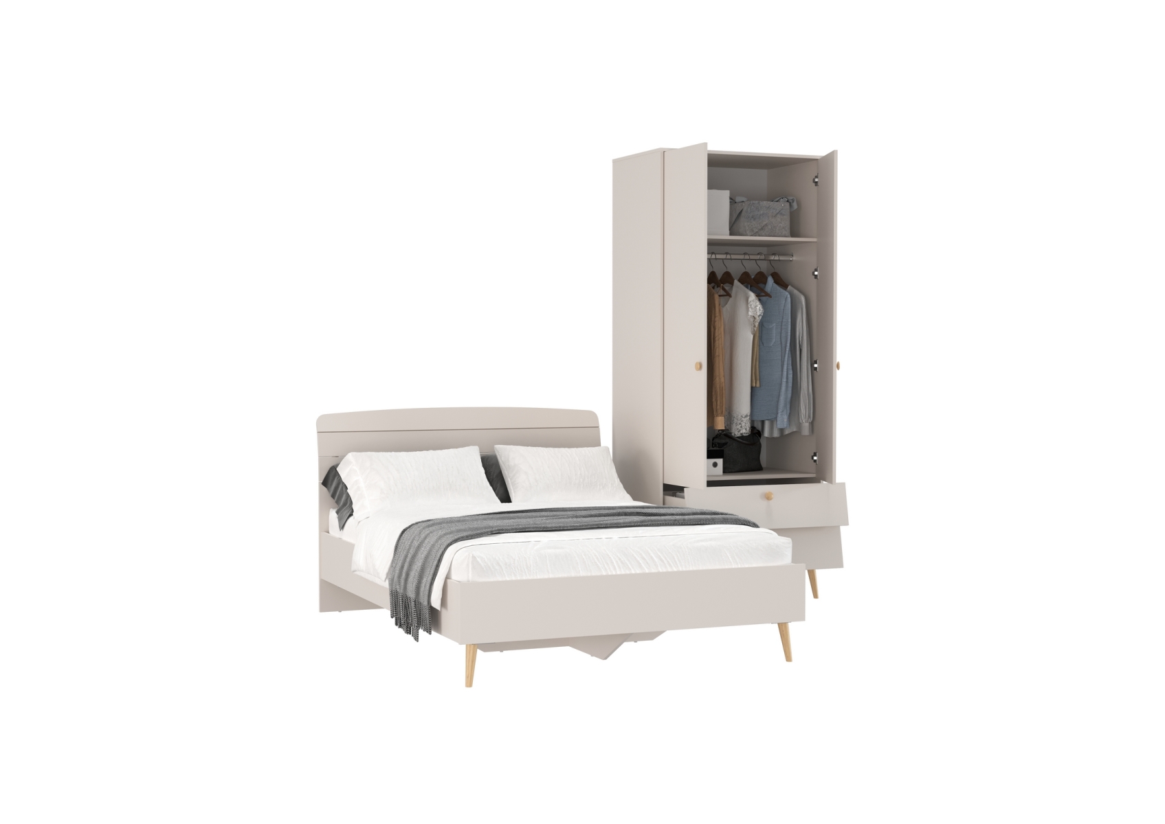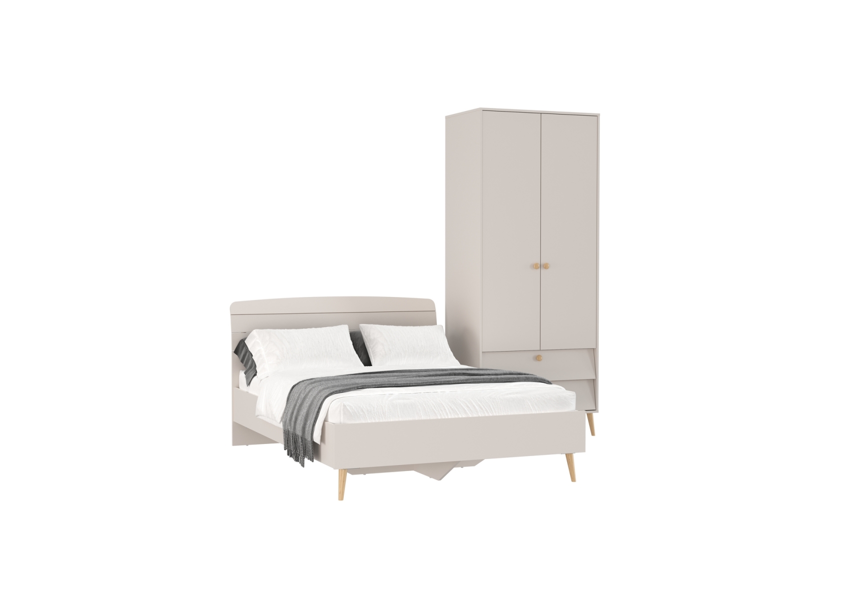 Афина Спальня Кровать 1400 + Шкаф 2-х дверный, цвет кашемир серый, ШхГхВ 144,6х210,2х95,7 + 90,3х56,3х220 см., сп.м. 1400х2000 мм., б/м, осн. есть