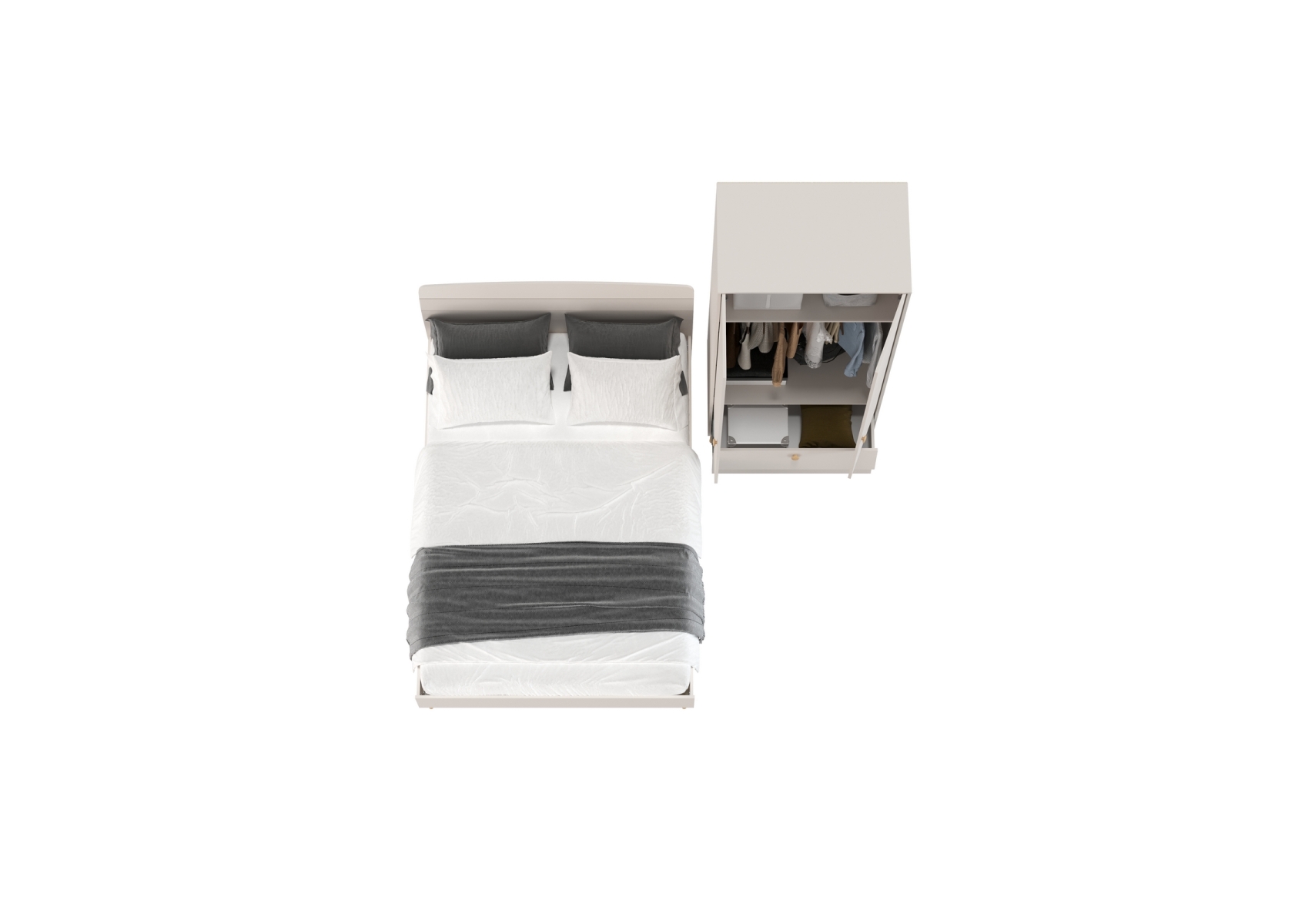 Афина двухспальная кровать 1400 с 2-х дверным шкафом-комодом. Цвет - кашемир серый. Количество мебели - 2 шт. Спальное место размером 1400х2000 мм обеспечивает комфортный отдых. Комплектация включает кровать 1400 Афина 4-22911 и шкаф 2-х дверный Афина 4-75901. Вместительный комод Афина 4-44901 оснащен дверкой и тремя выдвижными ящиками, предоставляя достаточно места для хранения одежды и аксессуаров.
