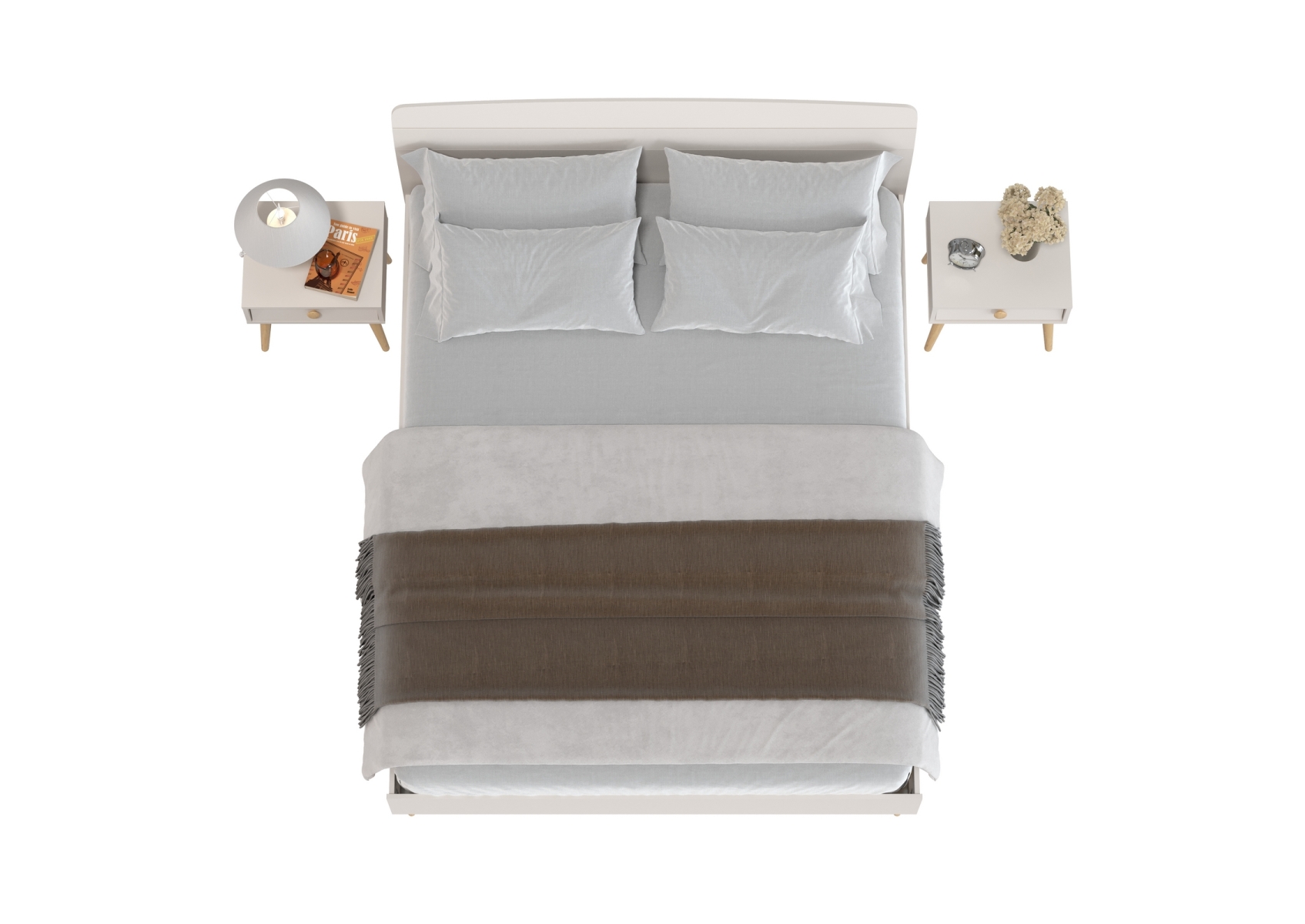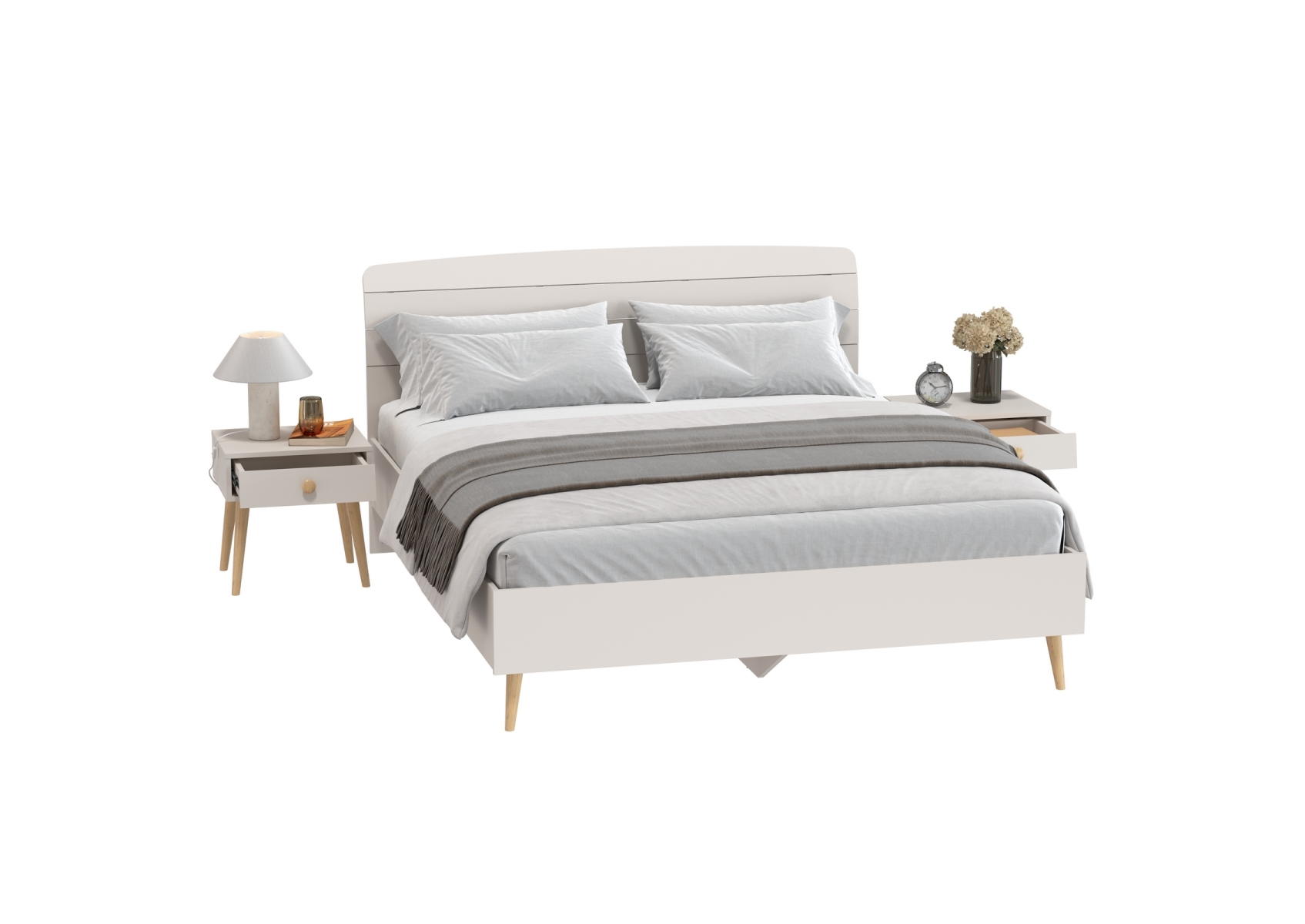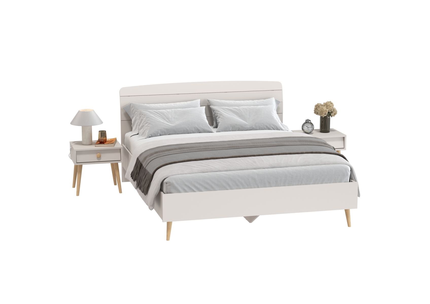 Современная мебель Афина из широкой кровати на 1600 и двух прикроватных тумбочек. Цвет - кашемир серый. 3 предмета мебели. Комплектация включает кровать 1600 Афина 4-22901 и две тумбы прикроватные Афина 4-09901. Цвет кашемир серый добавляет интерьеру уют и гармонию, прекрасно дополняя современный декор спальни.