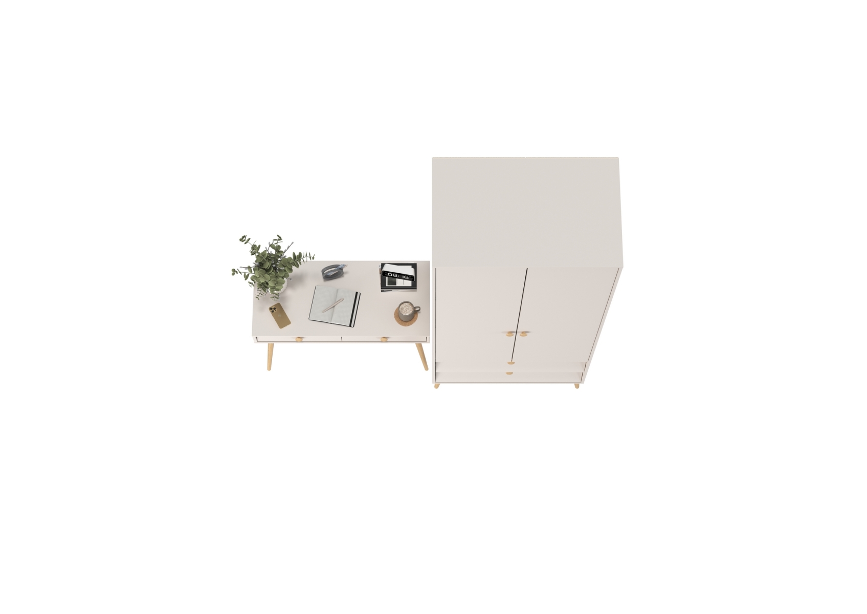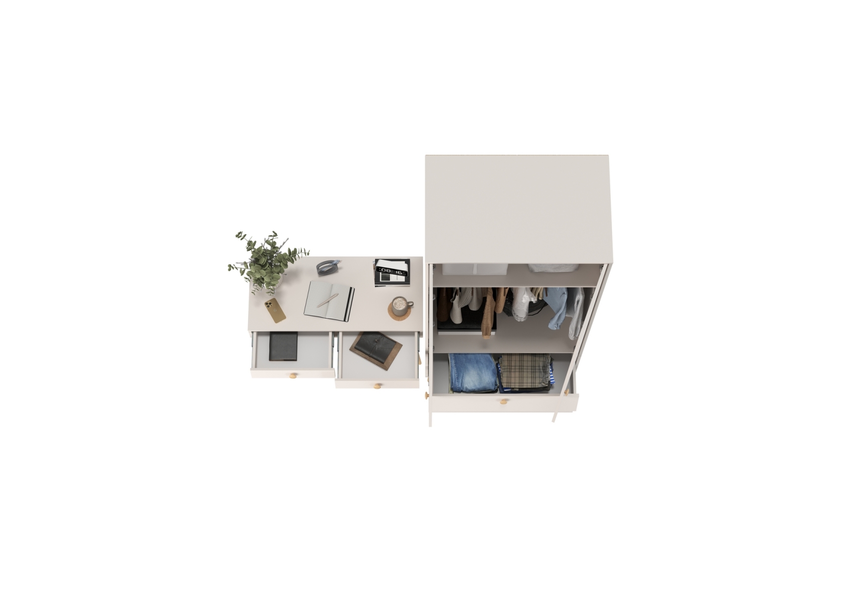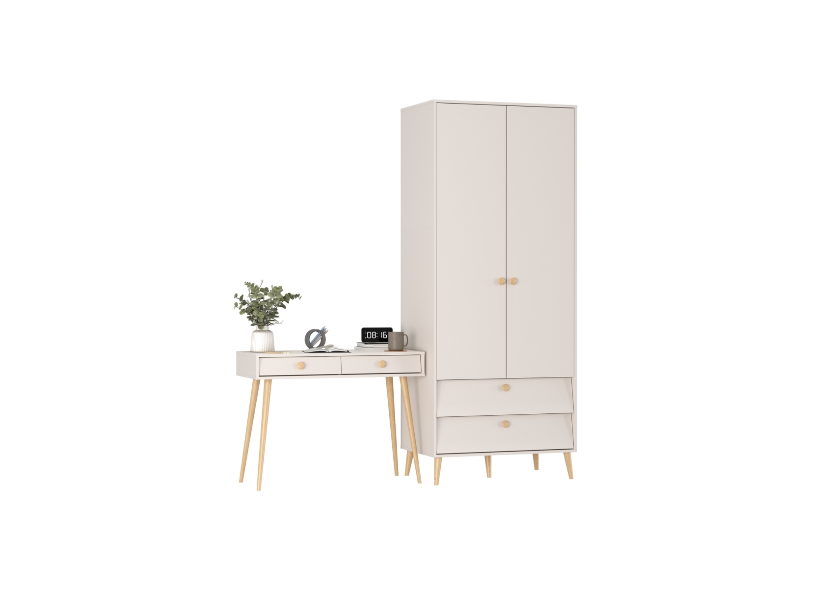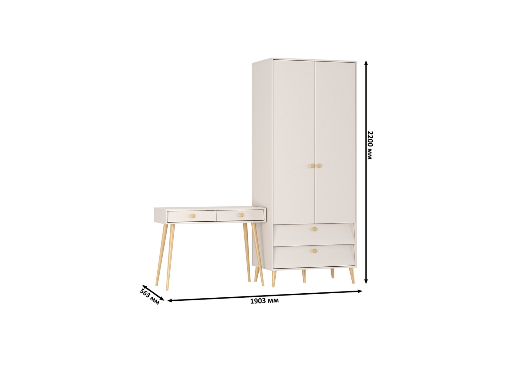 Афина Спальня Шкаф 2-х дверный + Стол, цвет кашемир серый, ШхГхВ 90,3х56,3х220 + 100х45х76 см., универсальная сборка