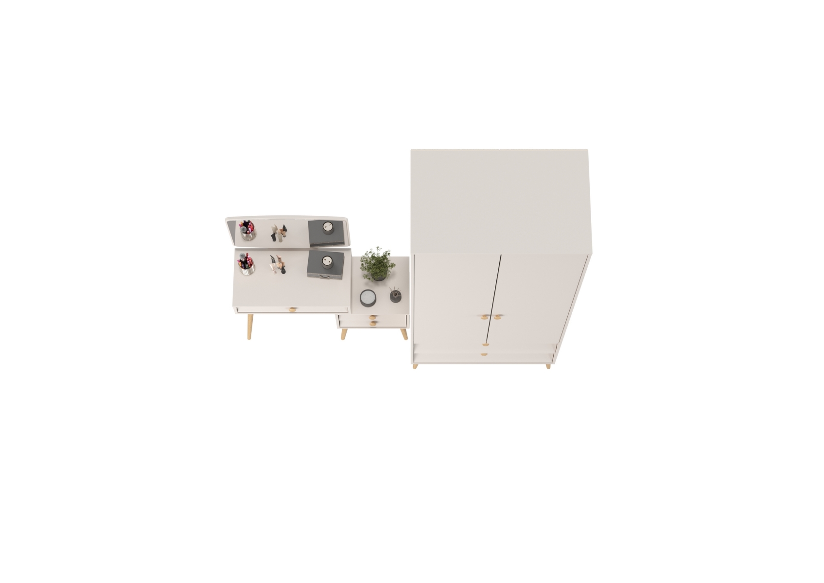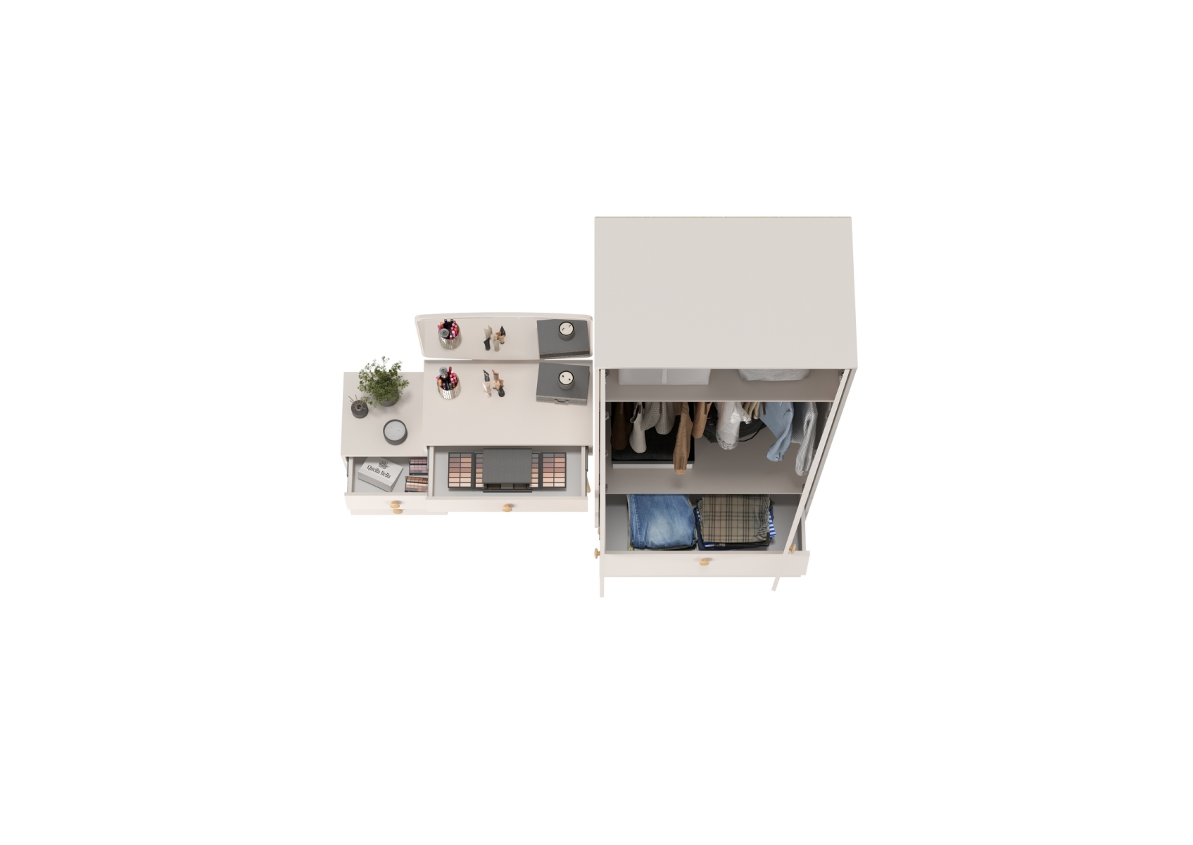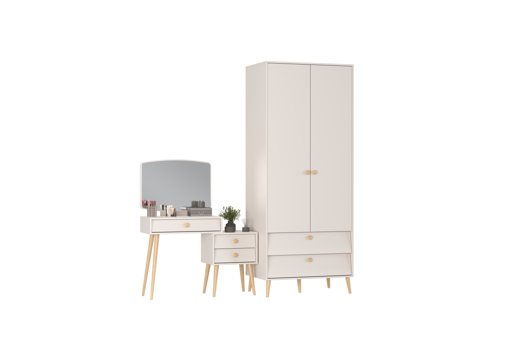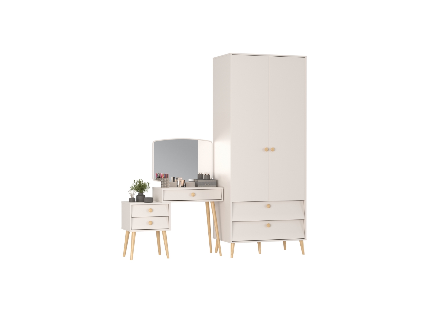 Афина Спальня Шкаф 2-х дверный + Трюмо, цвет кашемир серый, ШхГхВ 90,3х56,3х220 + 105х38,6х129 см., универсальная сборка
