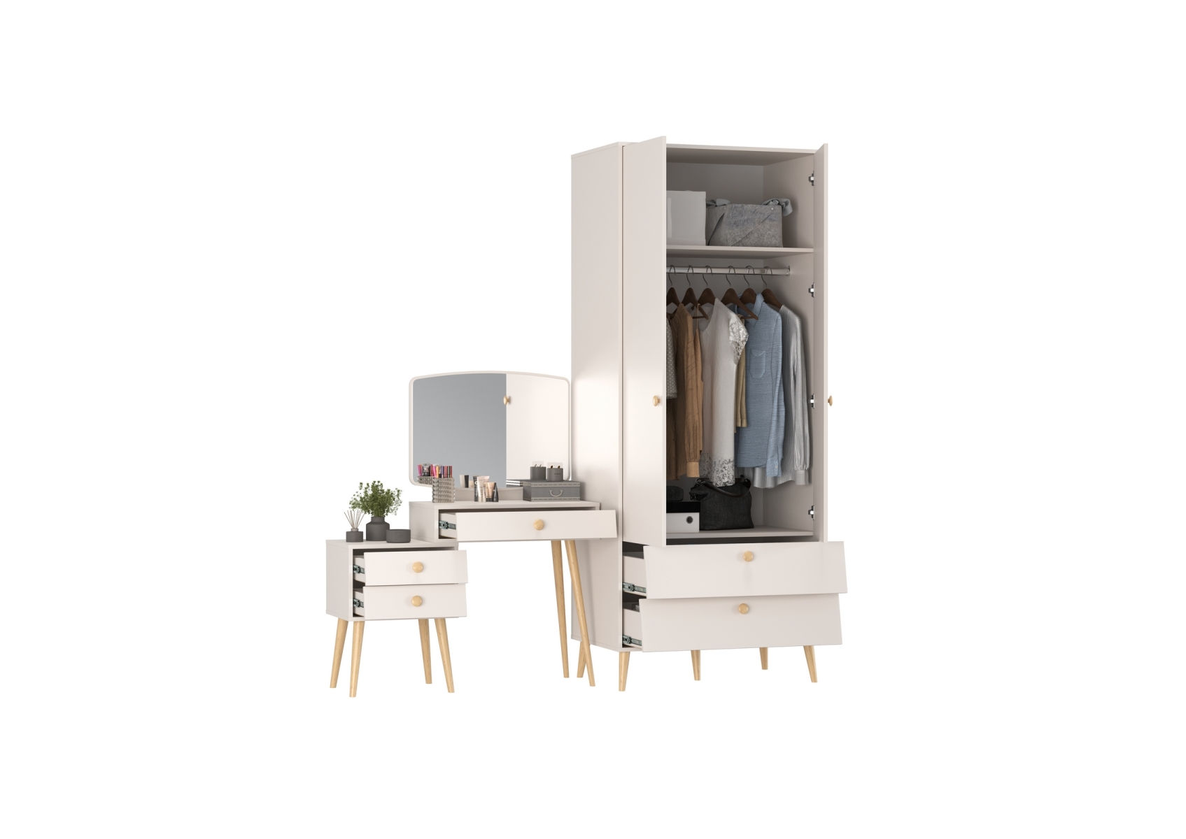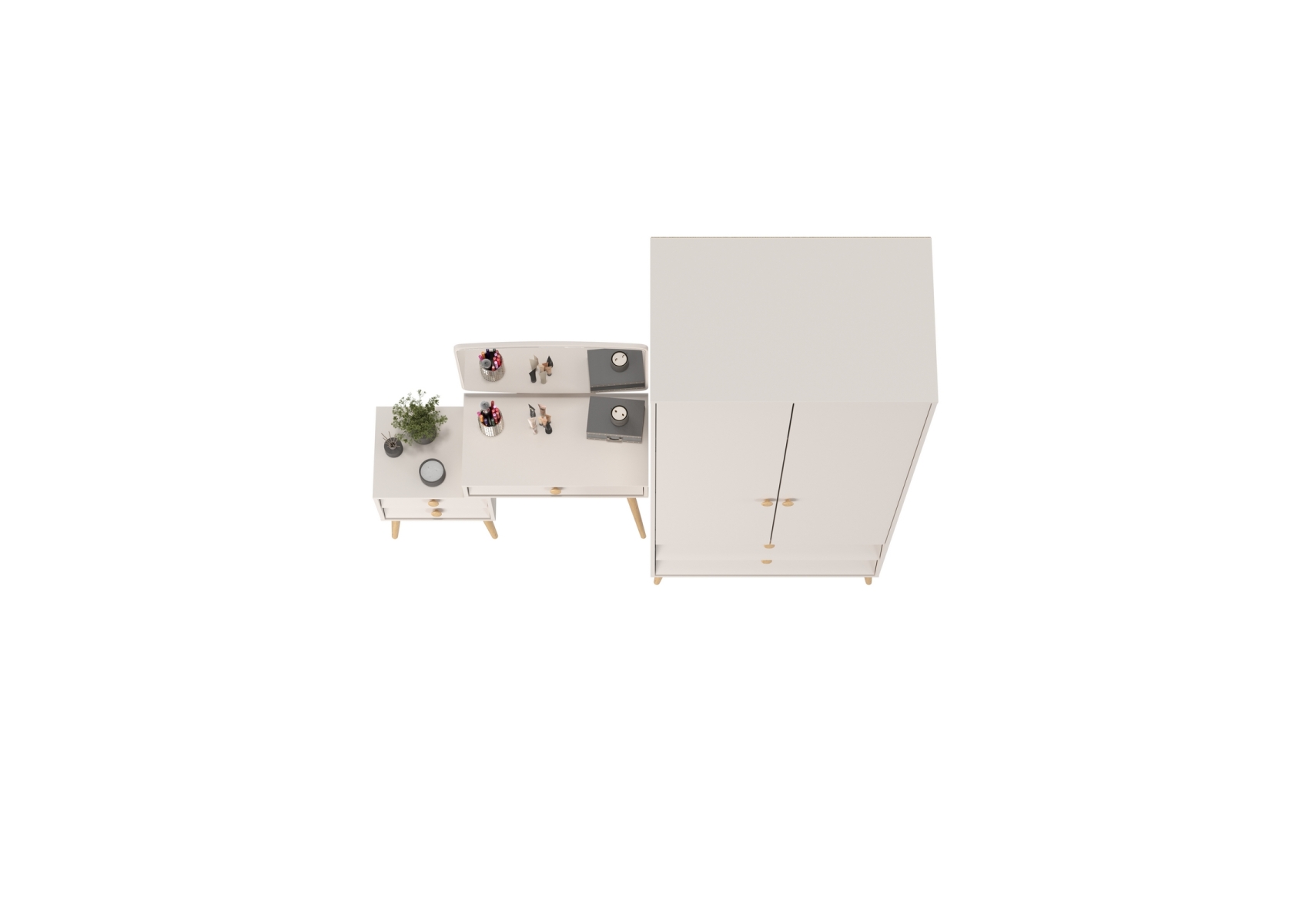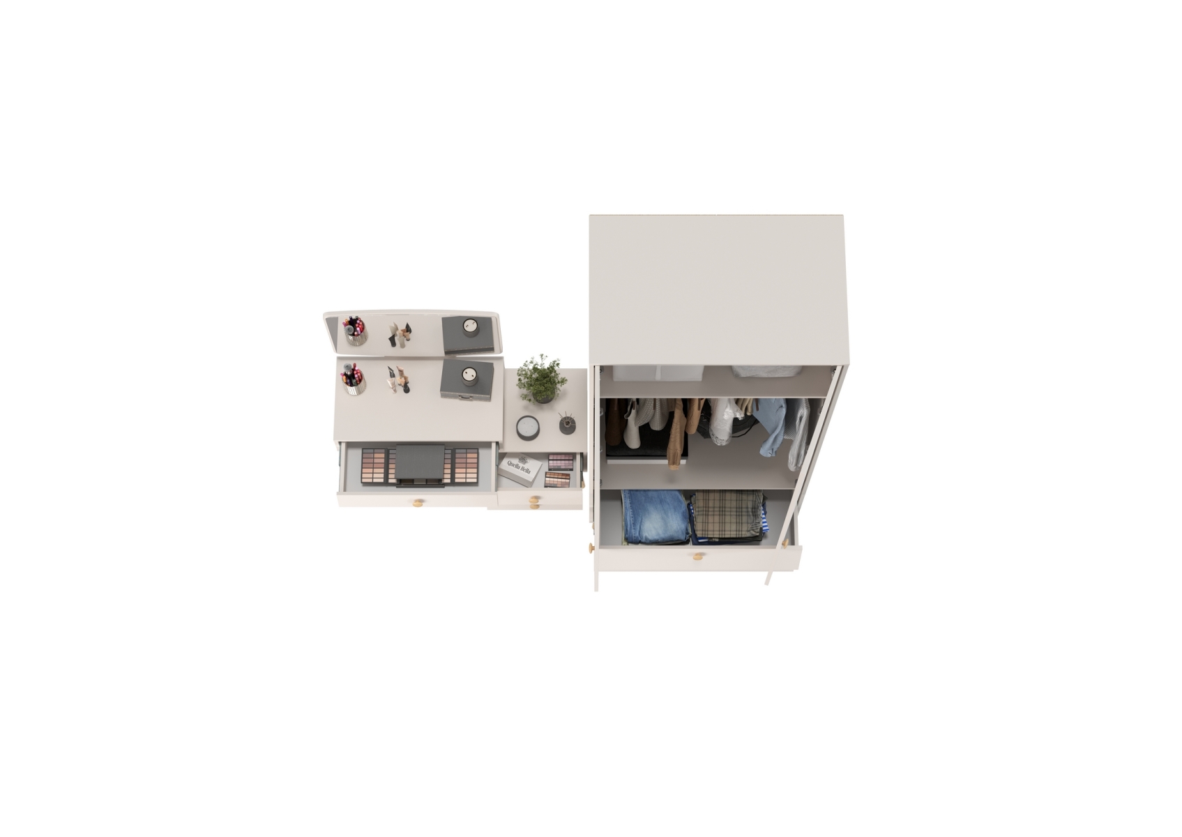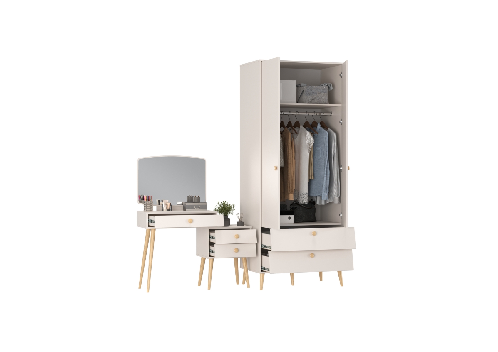 Афина Спальня Шкаф 2-х дверный + Трюмо, цвет кашемир серый, ШхГхВ 90,3х56,3х220 + 105х38,6х129 см., универсальная сборка