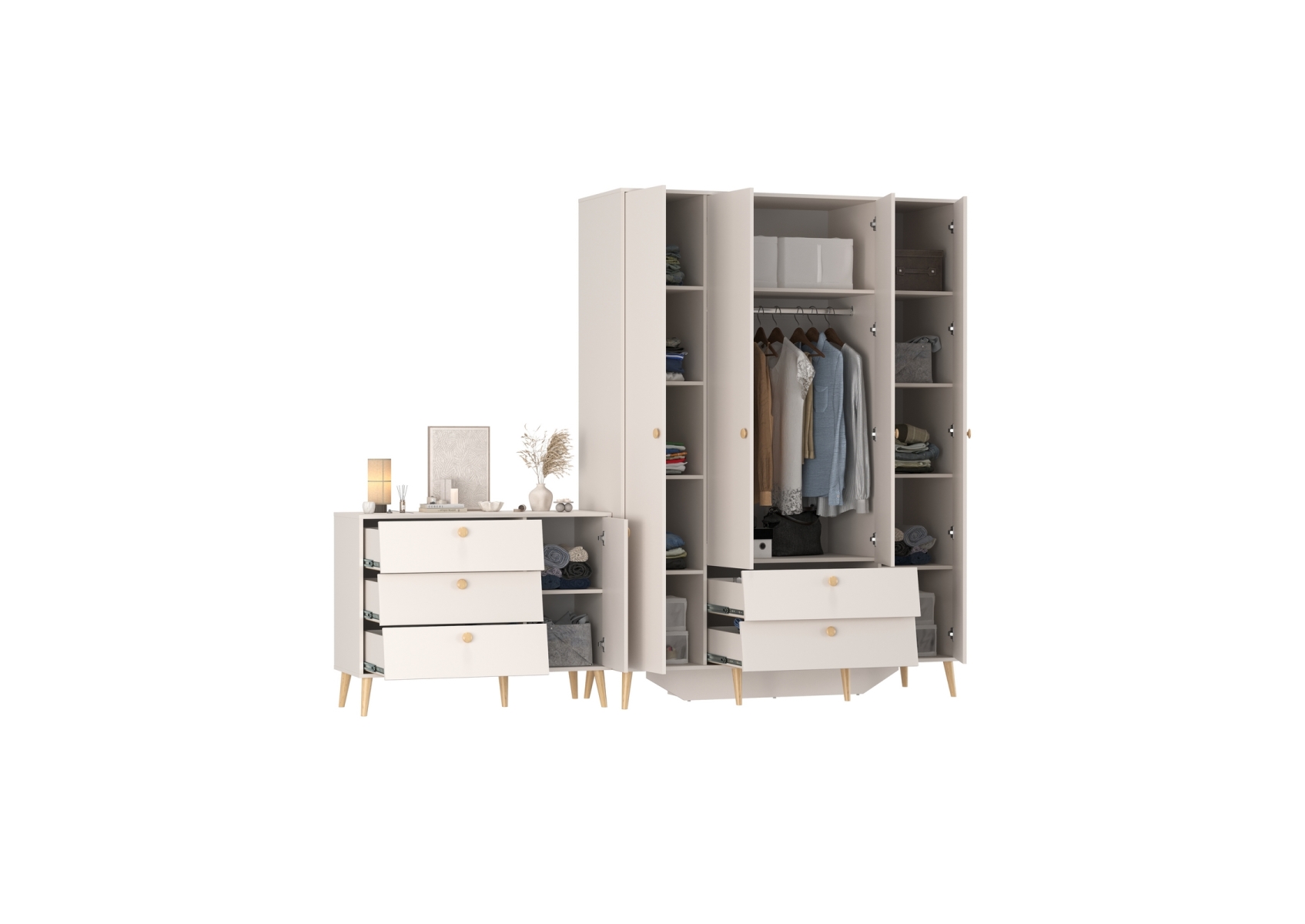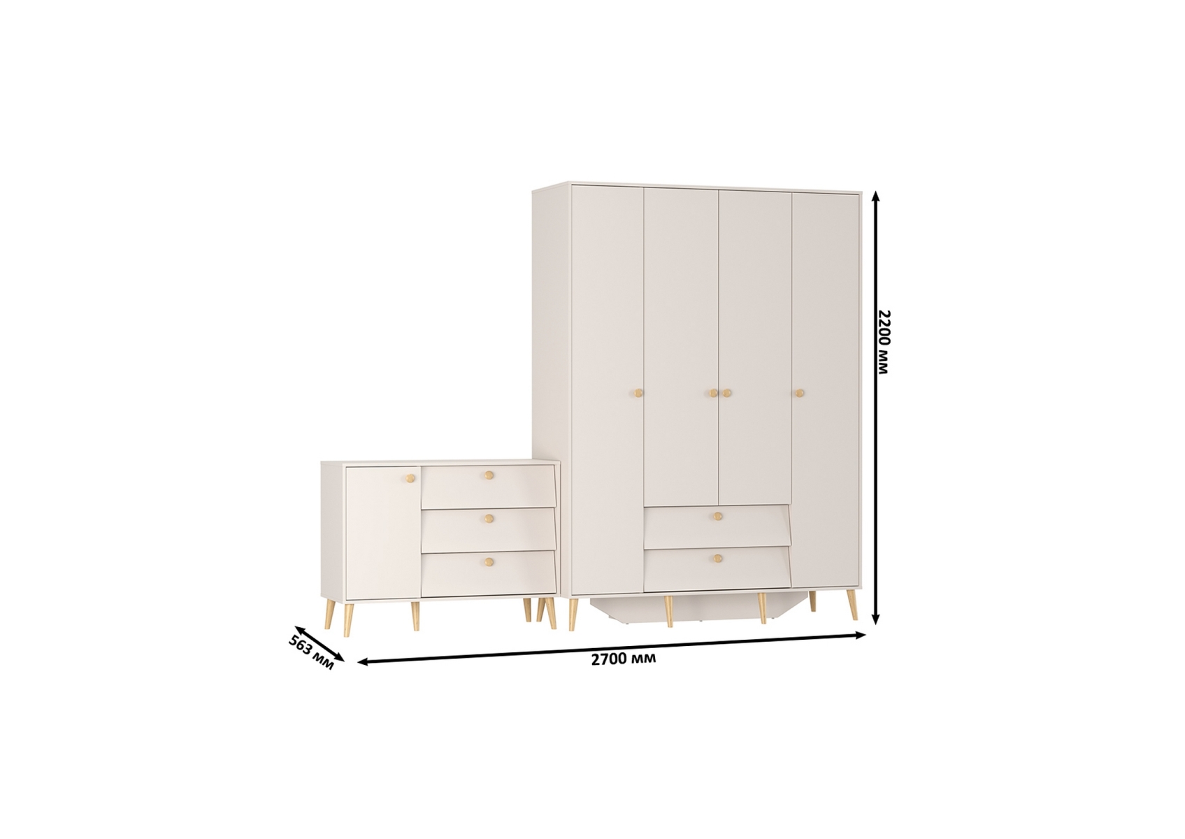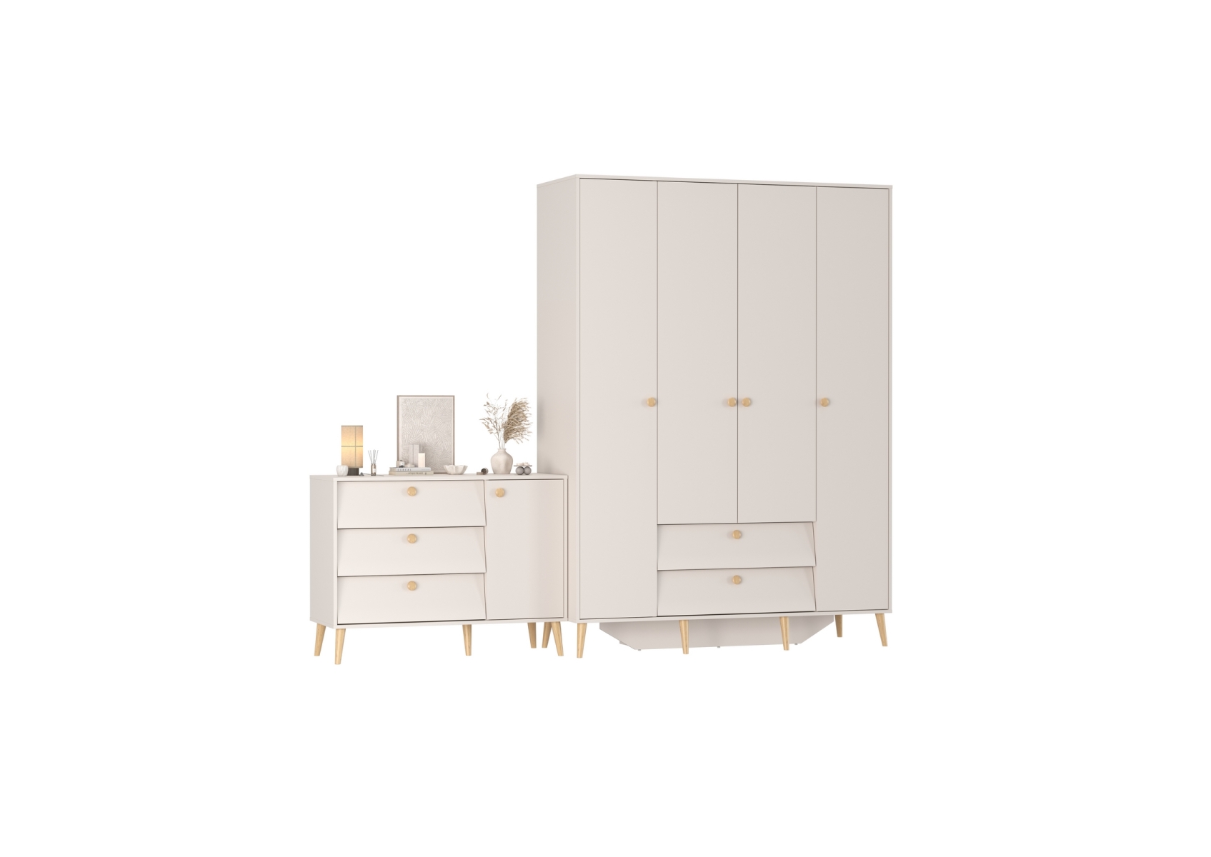 Афина Спальня Шкаф 4-х дверный + Комод с дверкой и тремя ящиками, цвет кашемир серый, ШхГхВ 160х56,3х220 + 110х45,3х83 см., универсальная сборка