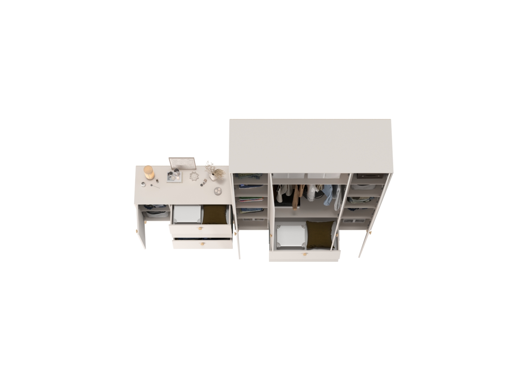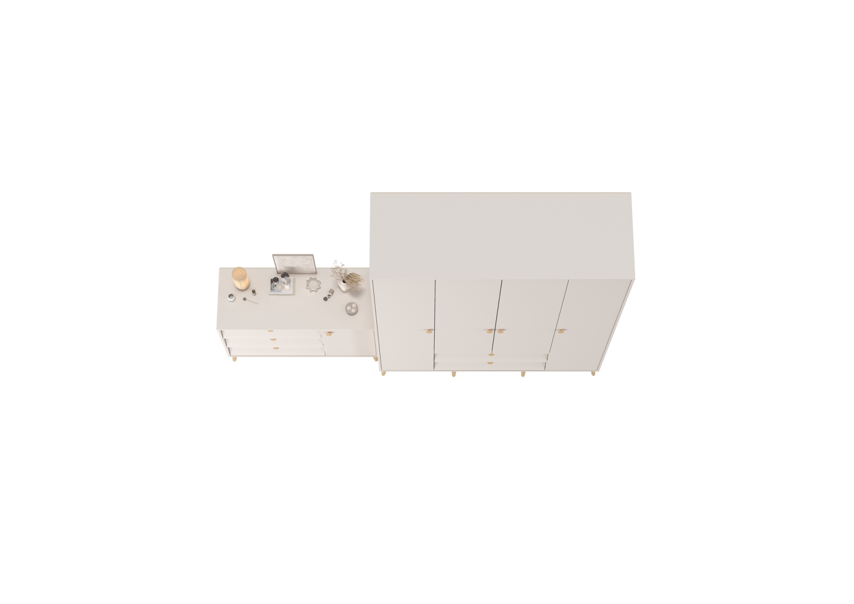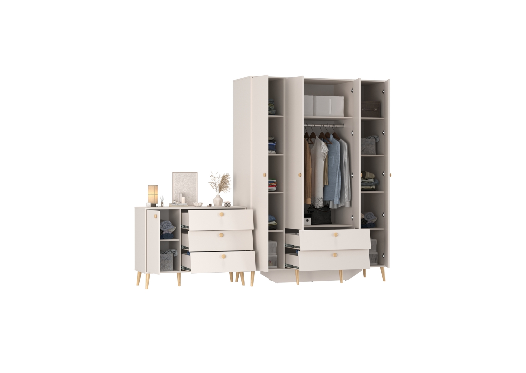 Афина Спальня Шкаф 4-х дверный + Комод с дверкой и тремя ящиками, цвет кашемир серый, ШхГхВ 160х56,3х220 + 110х45,3х83 см., универсальная сборка