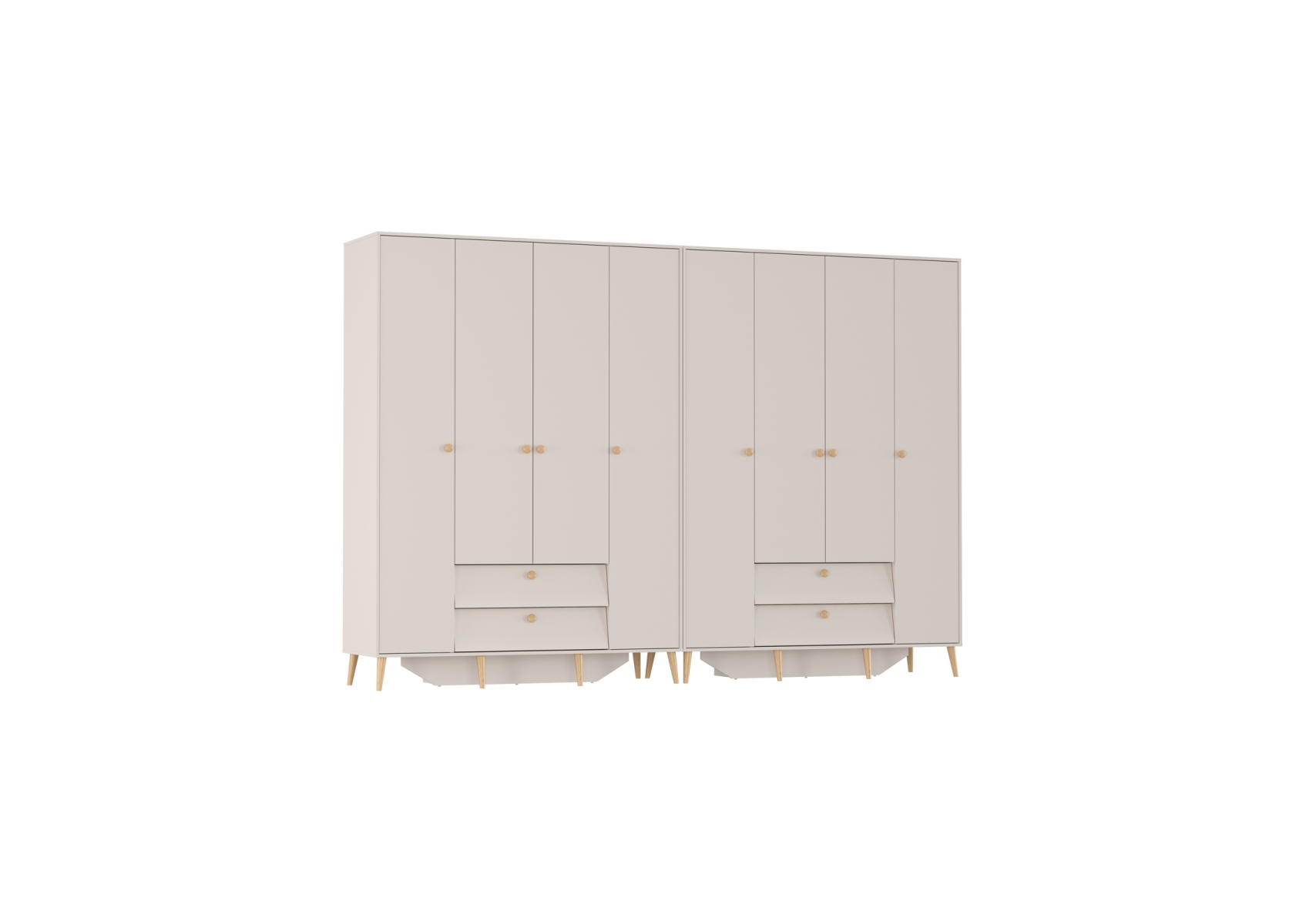 Афина Спальня Шкаф 4-х дверный с двумя ящиками х 2, цвет кашемир серый, ШхГхВ 320х56,3х220 см.