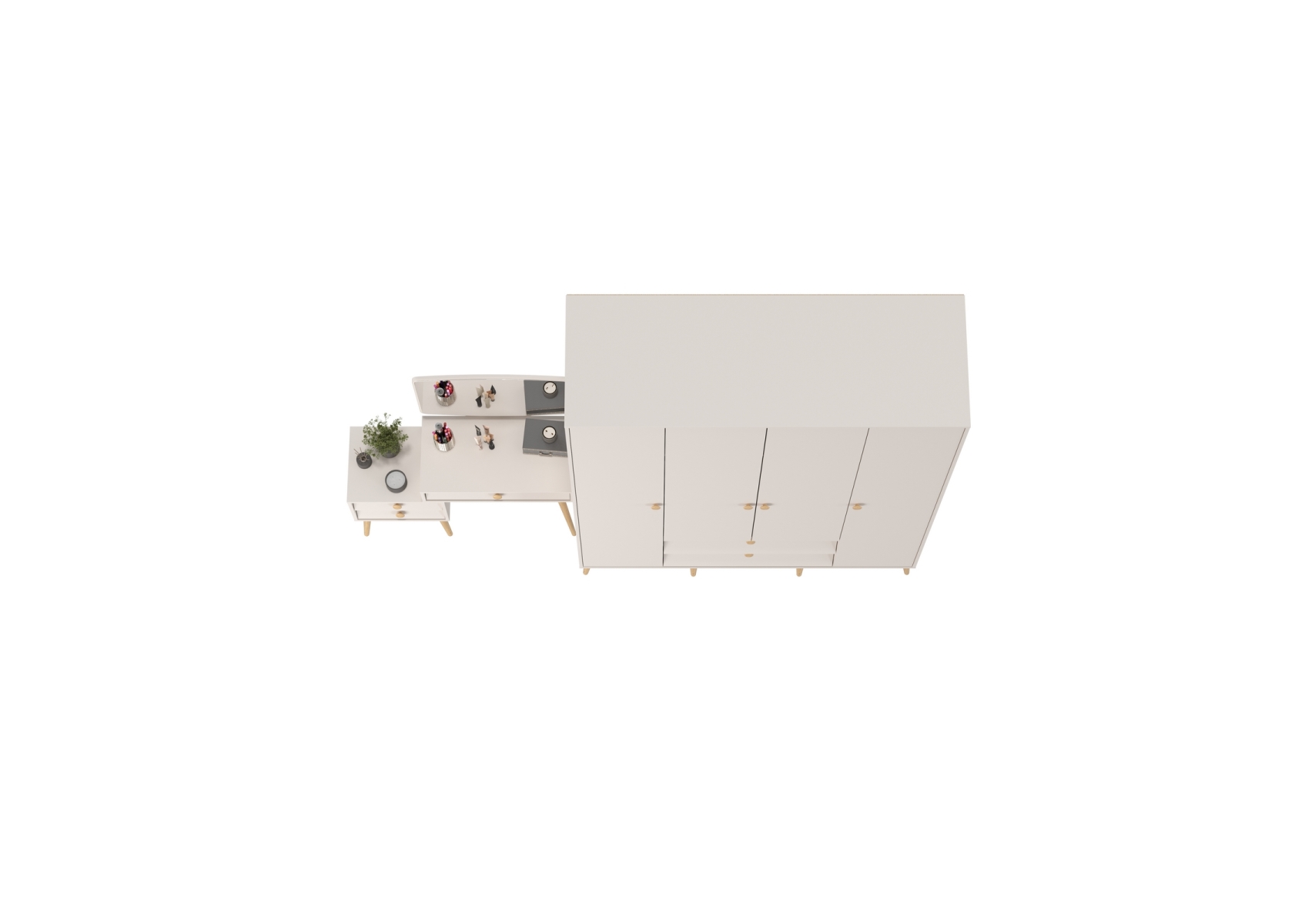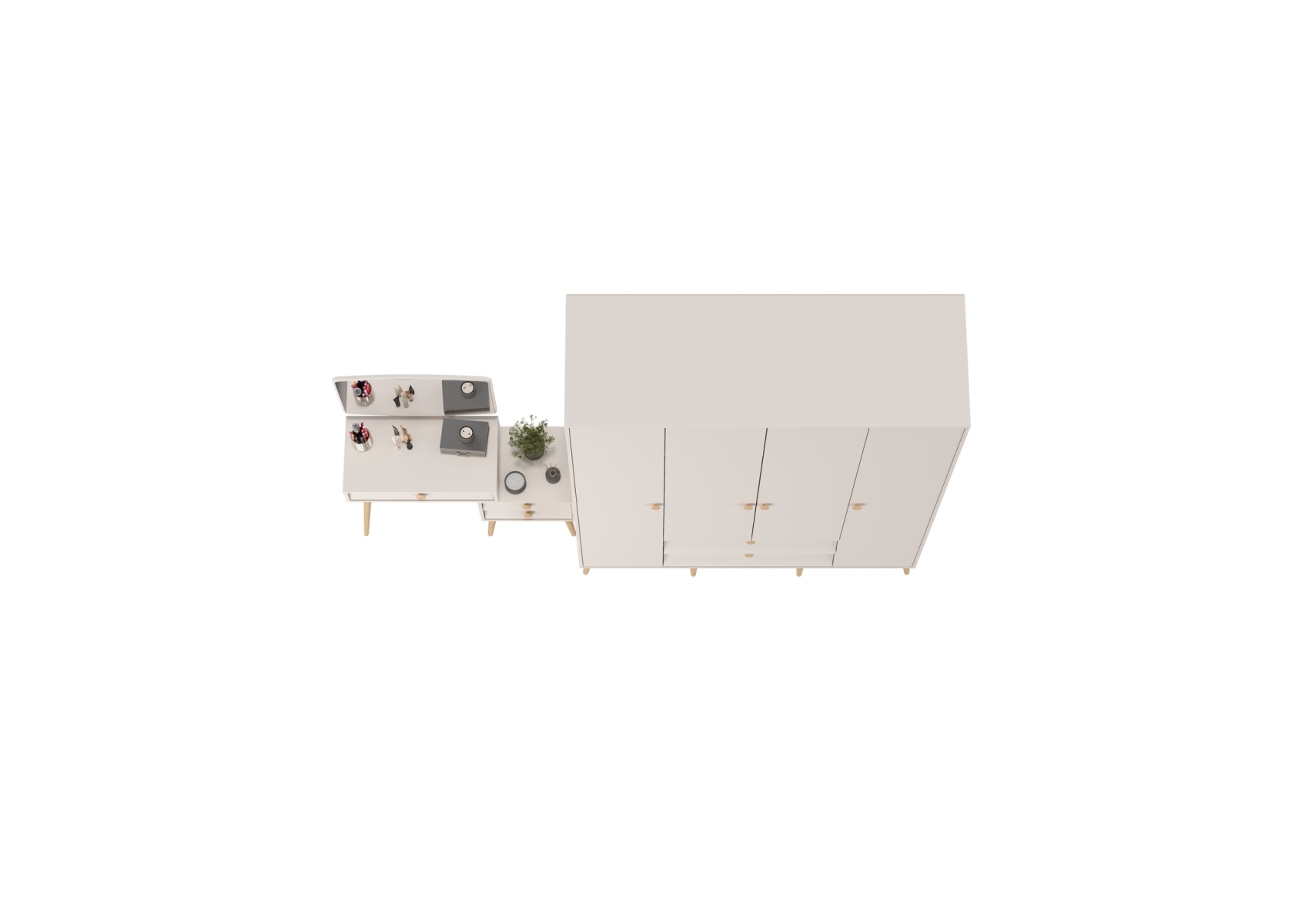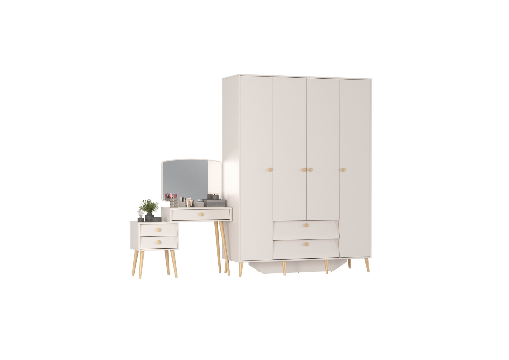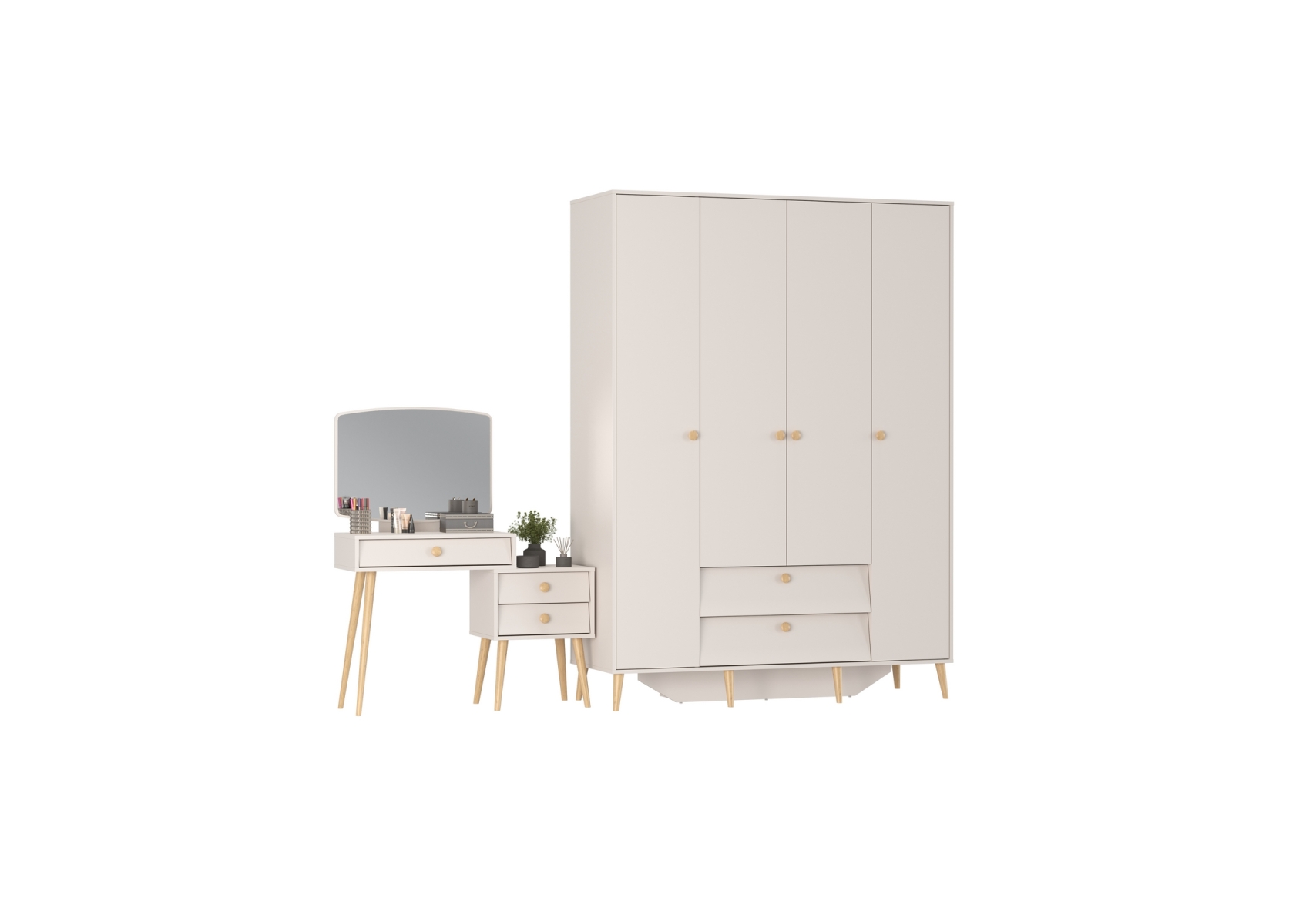 Афина Спальня Шкаф 4-х дверный + Трюмо, цвет кашемир серый, ШхГхВ 160х56,3х220 + 105х38,6х129 см., универсальная сборка