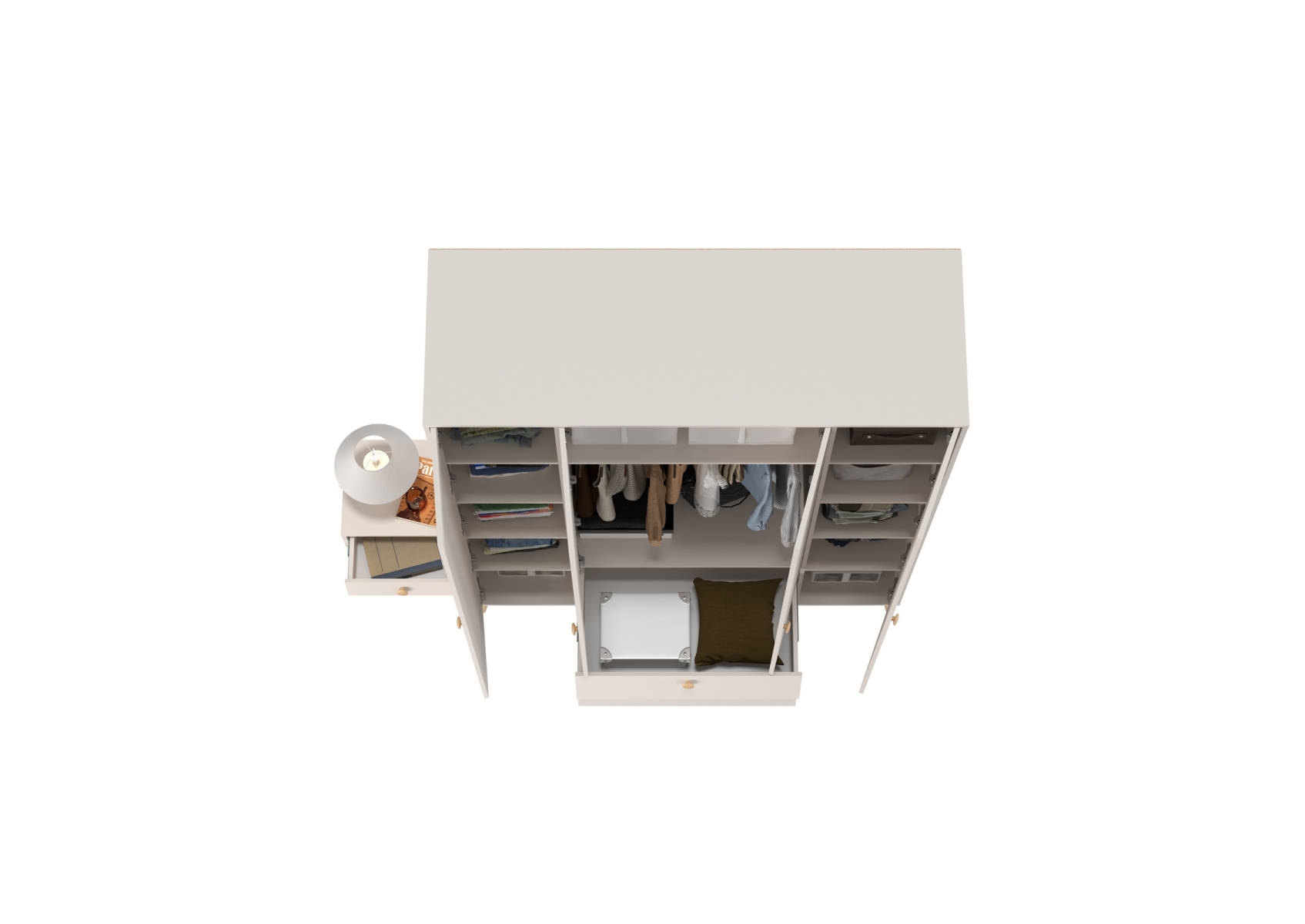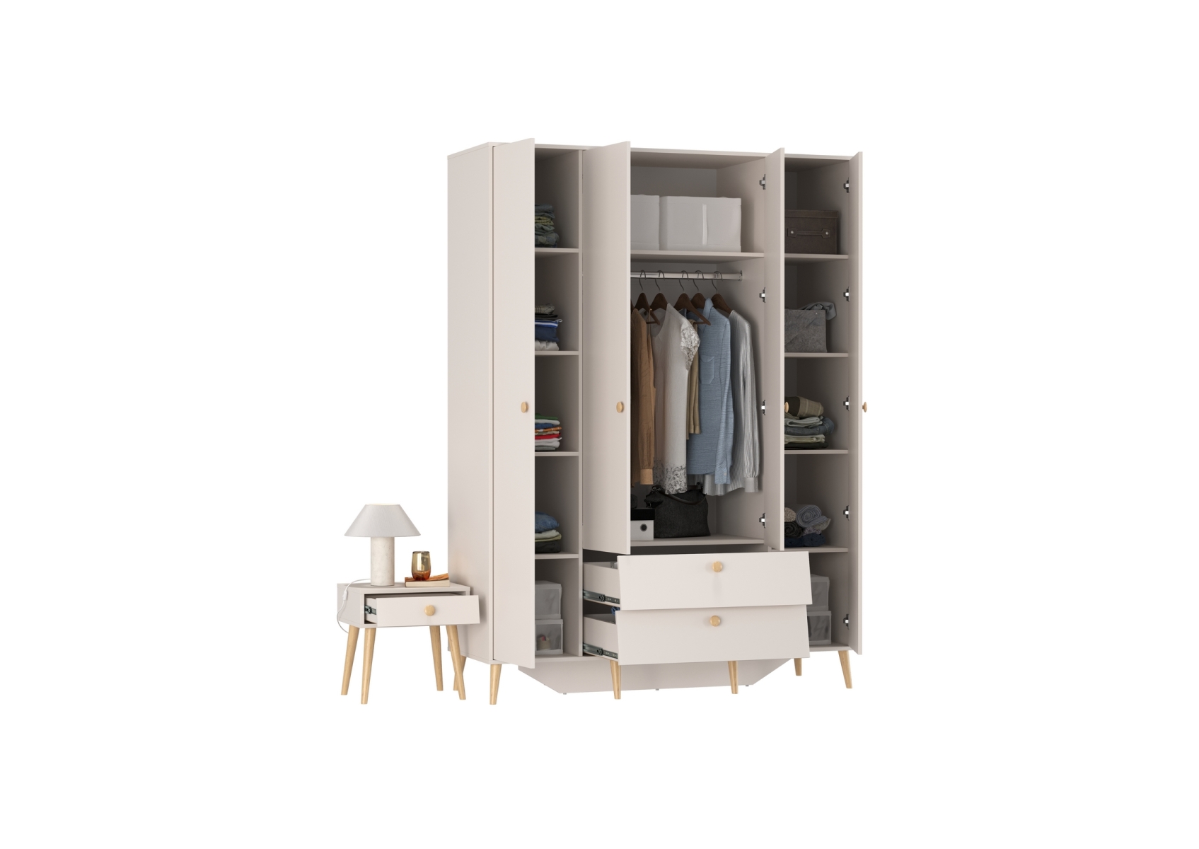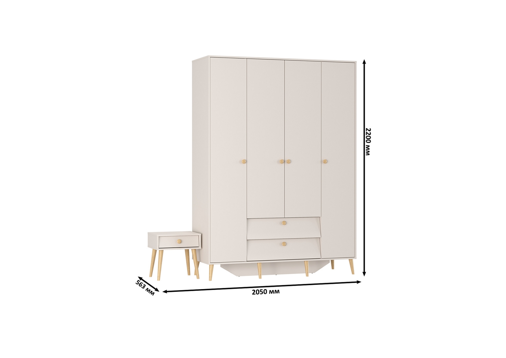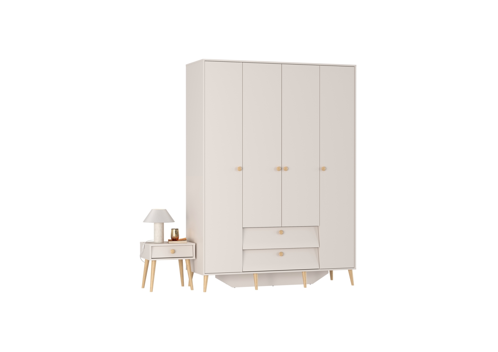 Афина Спальня Шкаф 4-х дверный + Тумба прикроватная, цвет кашемир серый, ШхГхВ 160х56,3х220 + 45х37х45 см., универсальная сборка