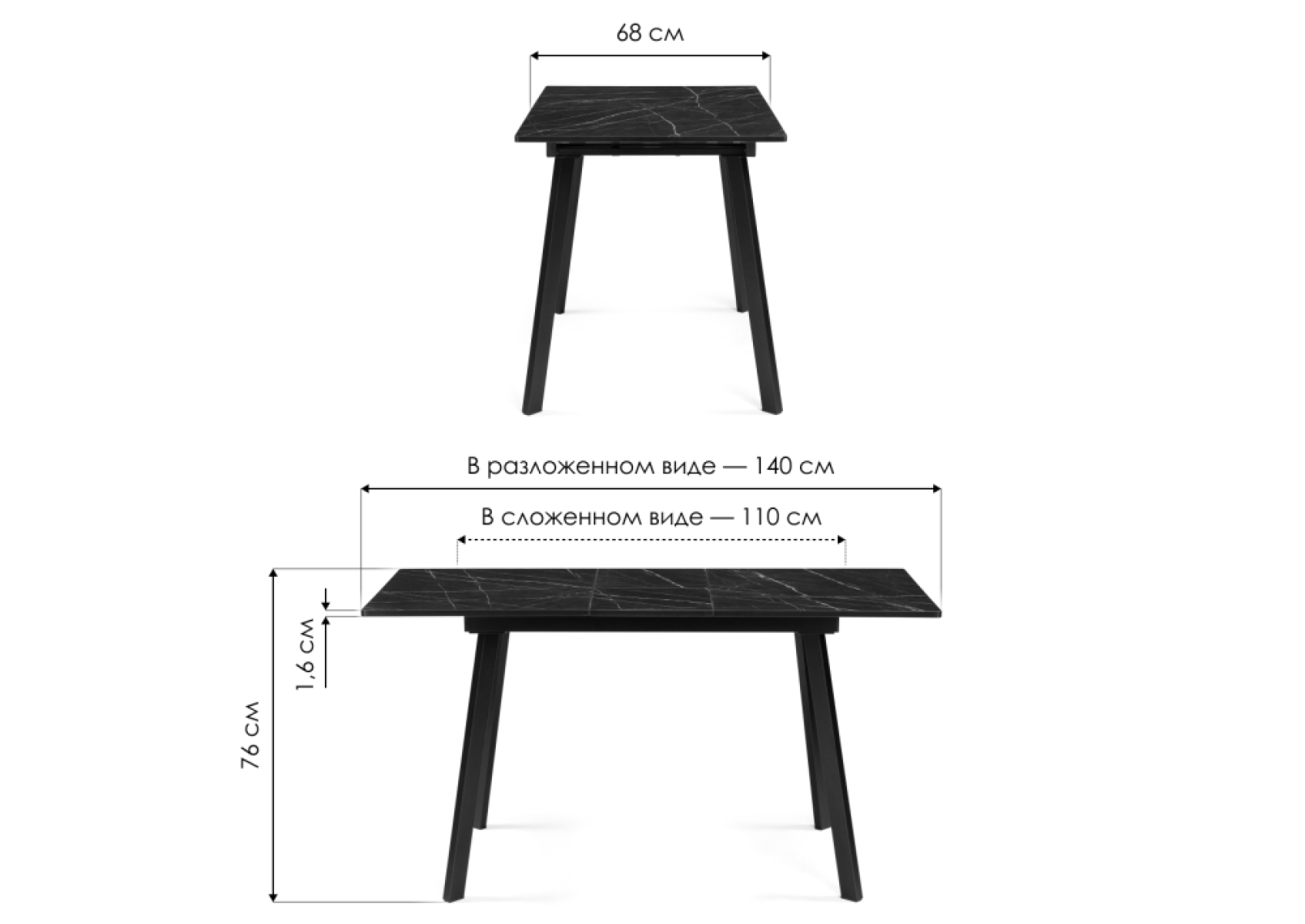 Длина стола в разложенном виде