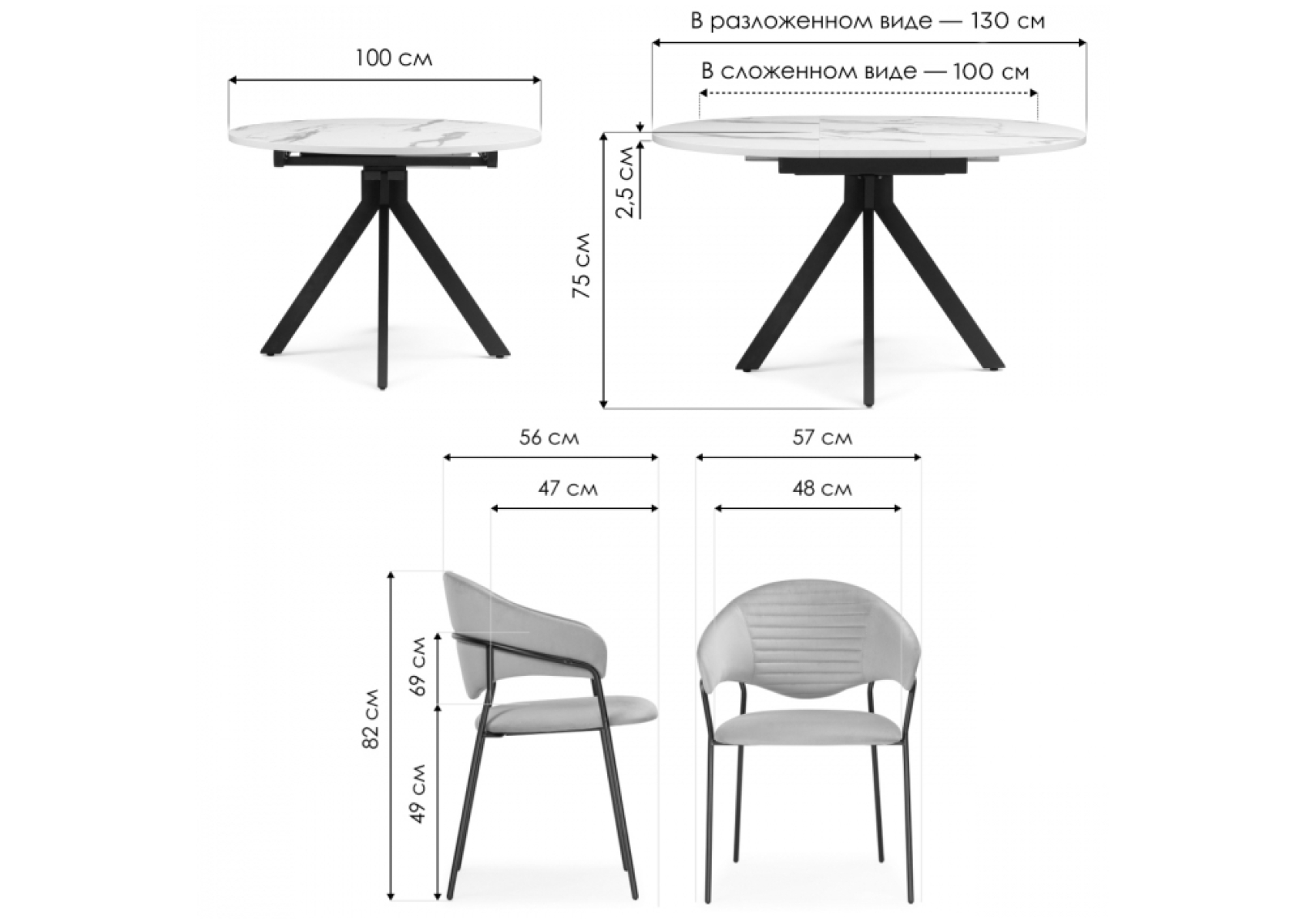 Обеденная группа Алейида белый / голубой / черный глянец