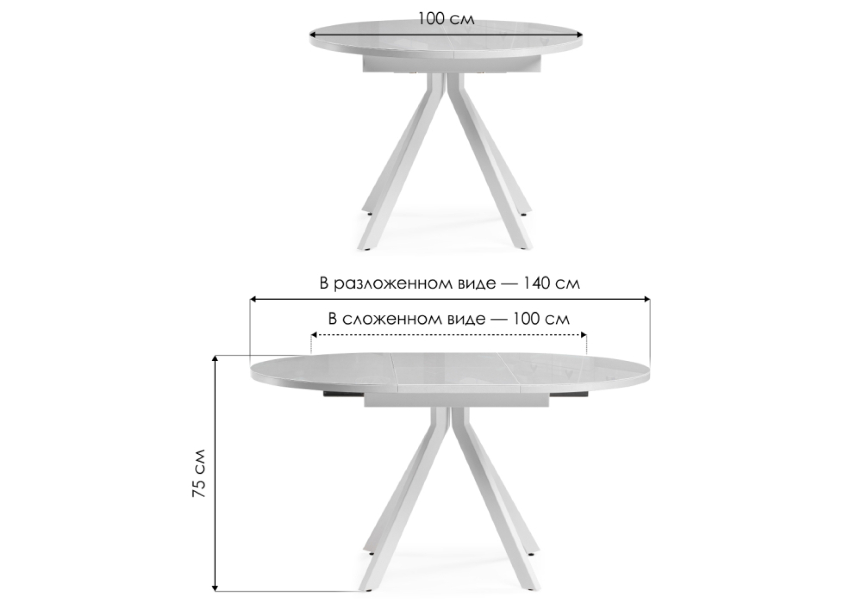 Стеклянный стол Ален 100(140)х100х75 ультра белое стекло / белый