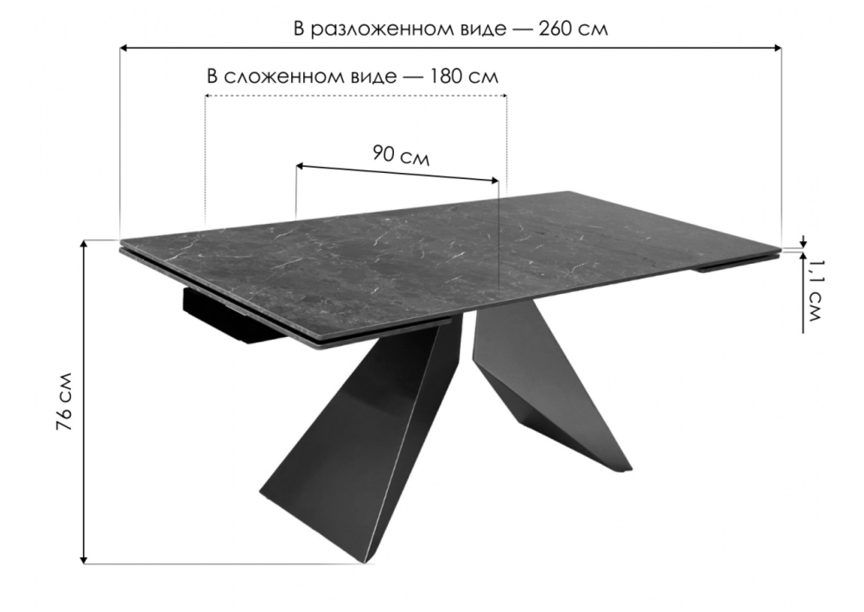 Керамический стол Ales 180 керамика black grave solid ceramic / бронзовый