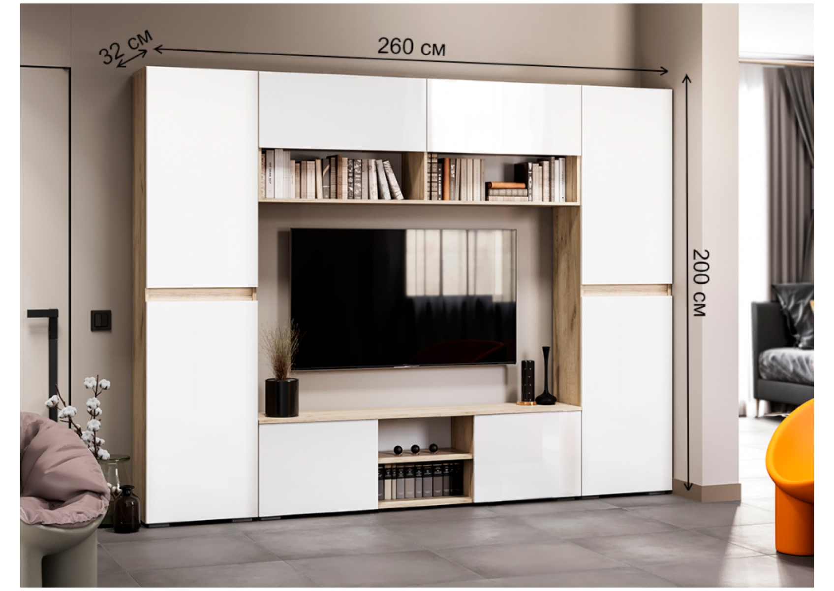 Модульная гостиная Алетра дуб крафт серый / глянец белый комплектация 3