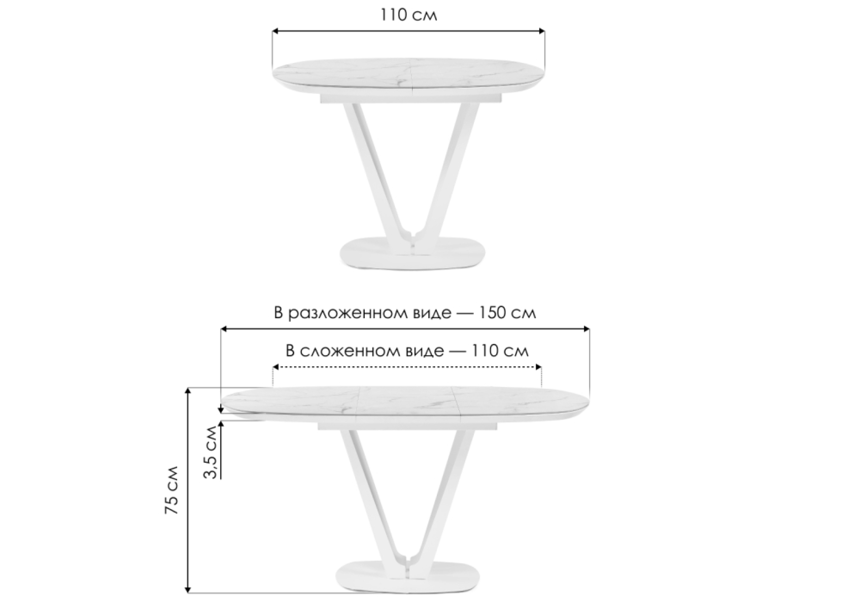 Длина стола в разложенном виде