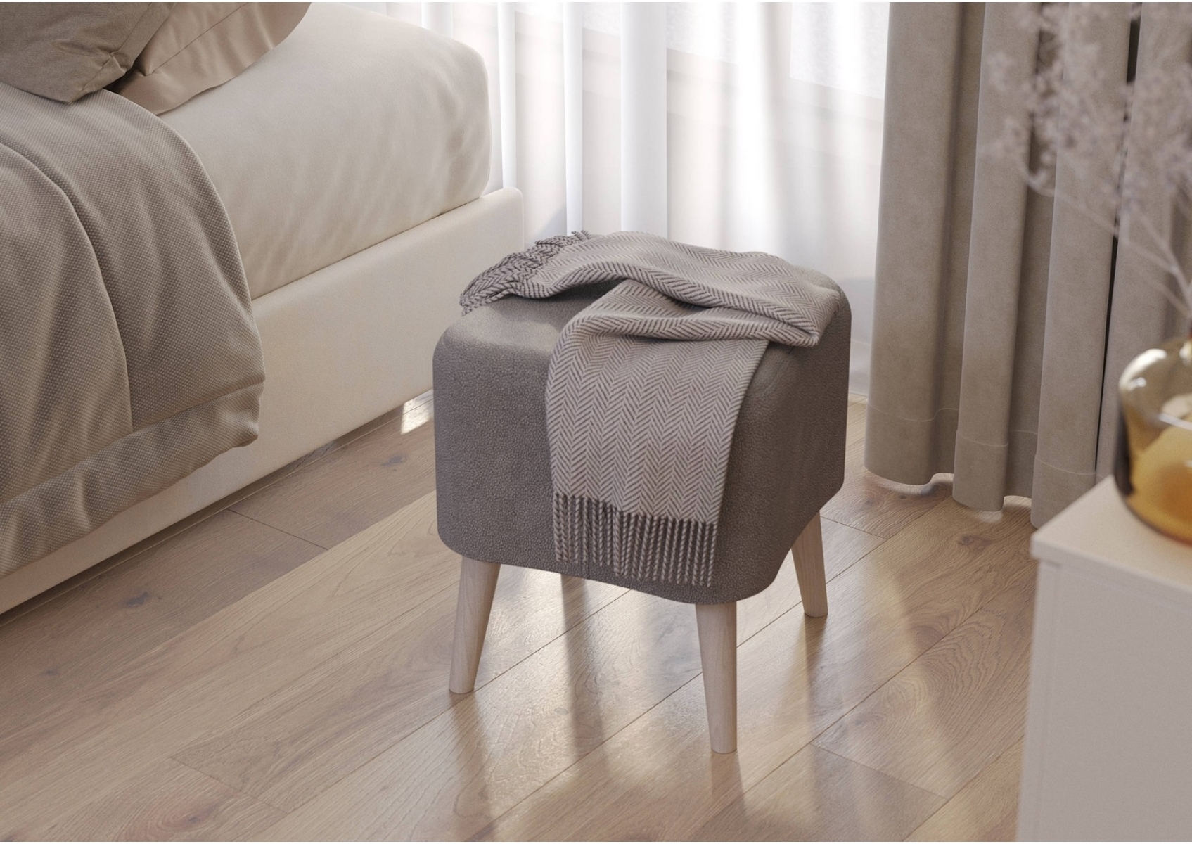 Банкетка тканевая на четырёх ножках квадратная Куби 6-5133. Обивка - ткань серая. Габариты (ШхГхВ) 41х41х45 см. Мягкое сиденье с обивкой из приятной на ощупь ткани цвета «молоко» создаёт ощущение уюта и лёгкости. Квадратная форма делает модель лаконичной и универсальной, а устойчивые ножки высотой 20 см придают ей элегантность и визуальную лёгкость.