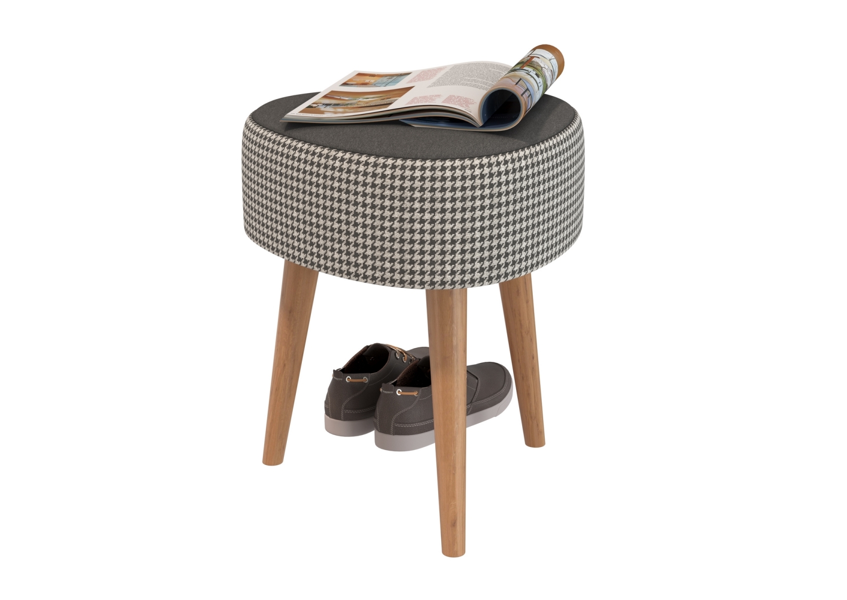Банкетка 6-5134ТКчёр Ева, цвет ткань чёрная с рисунком, ШхГхВ 38х38х45 см.(банкетка на трёх ножках), цвет ножек: тик