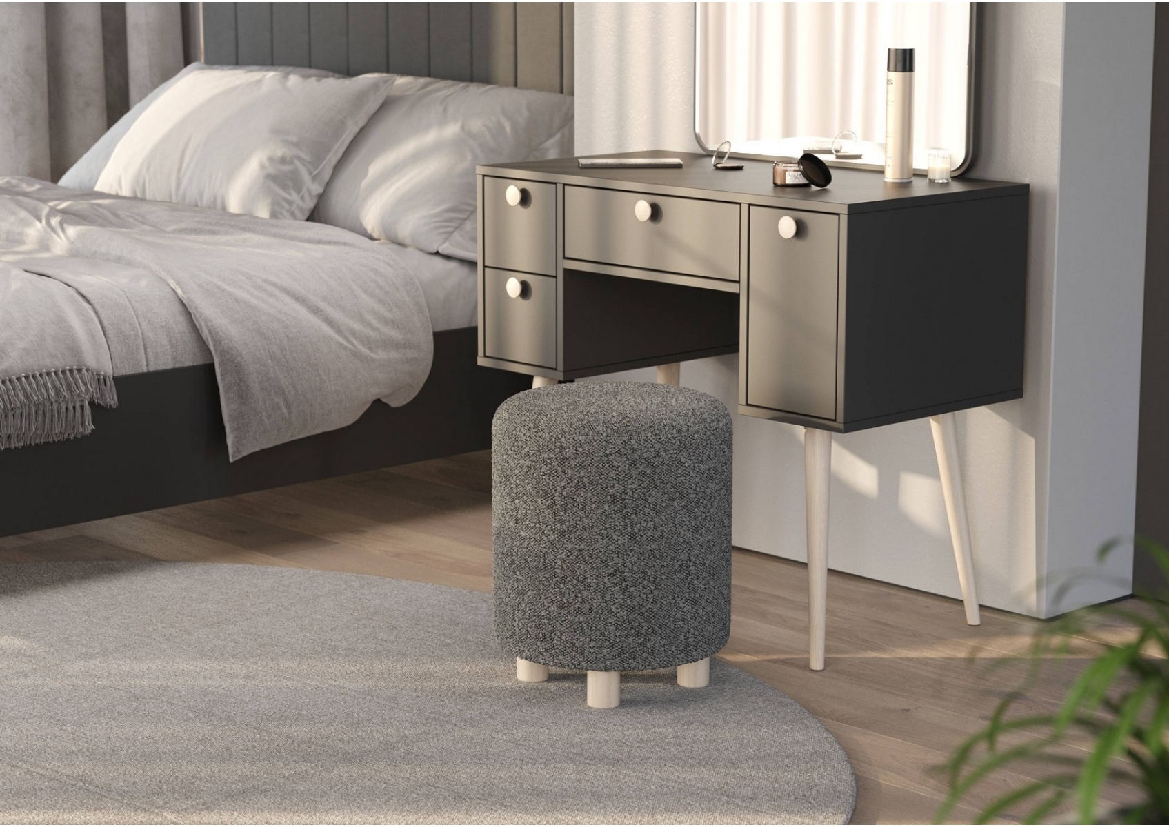 Банкетка 6-5137ТКШтем.серый Марта, цвет ткань тёмно-серая, ШхГхВ 36х36х46 см.(круглая банкетка на трёх ножках)
