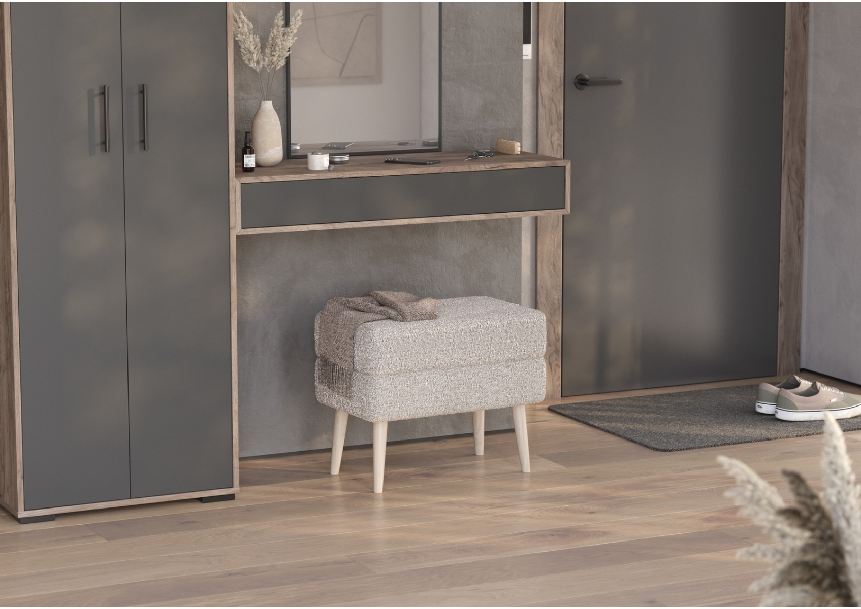 Банкетка Тифани на четырёх ножках 6-5138. Обивка - ткань светло-серая. Габариты (ШхГхВ) 55х33х46 см. Лаконичный дизайн идеально подходит для спальни, прихожей или зоны ожидания в офисе, создавая комфортное место для отдыха. Прямоугольная форма обеспечивает удобную посадку, а изящные ножки высотой 20 см придают конструкции лёгкость и утончённость.
