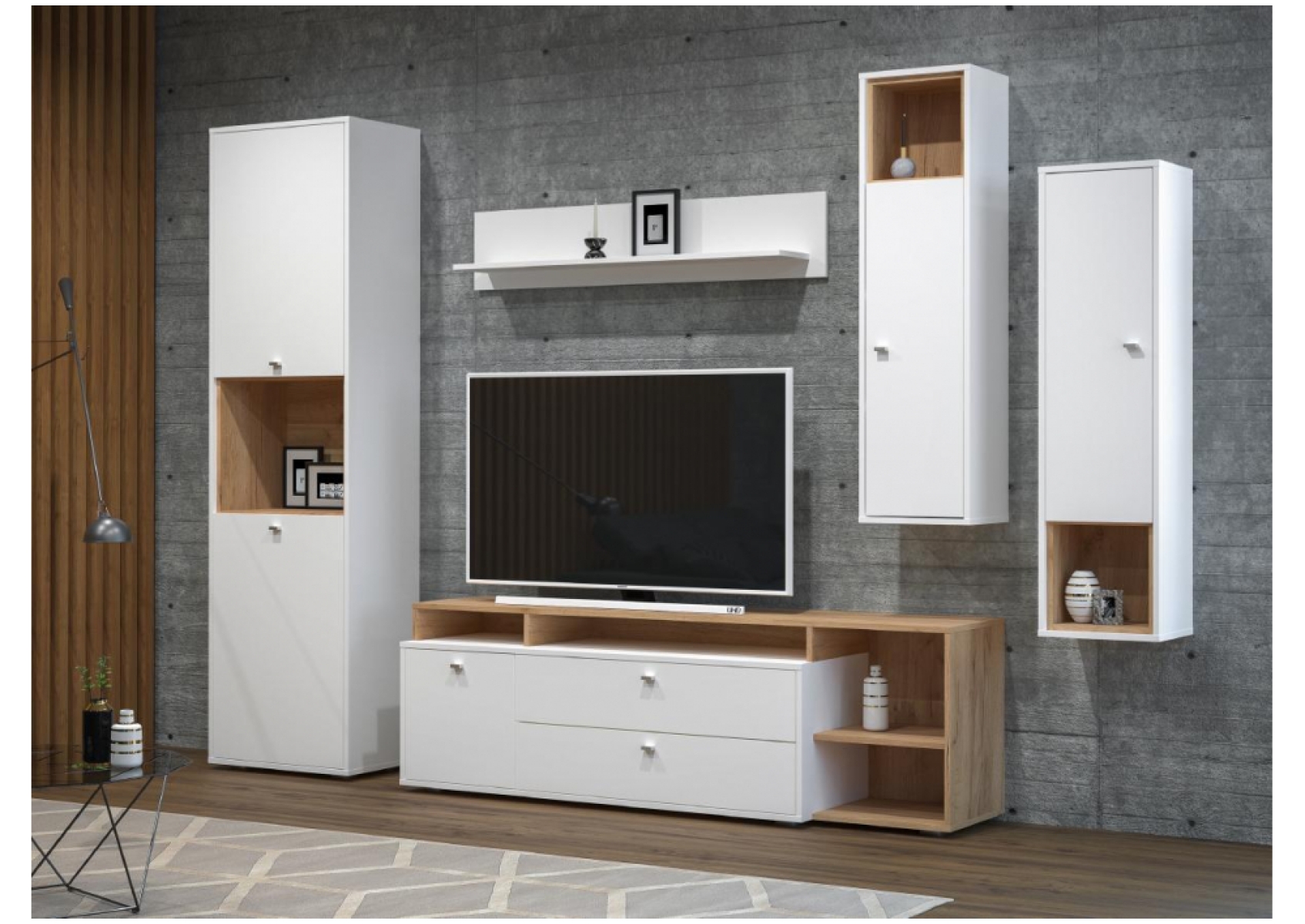 Шкаф-пенал Бэль 10.04 белый премиум / дуб золотой craft