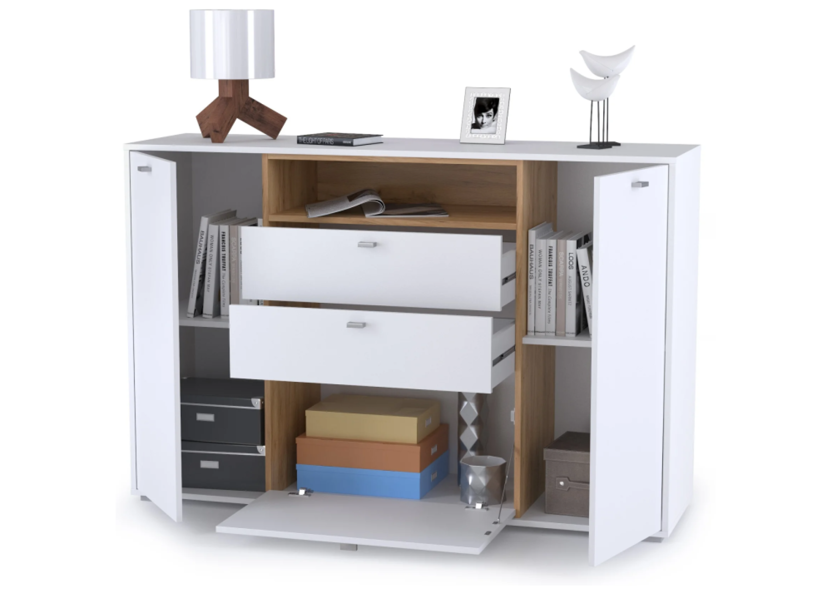 Комод Бэль 10.95 белый премиум / дуб золотой craft