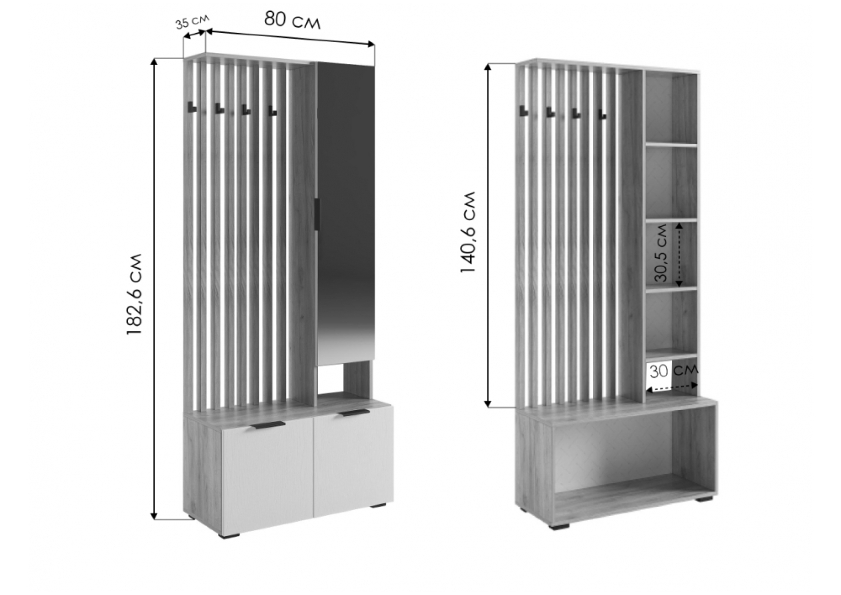 Готовая прихожая Бери дуб крафт золотой / белое дерево