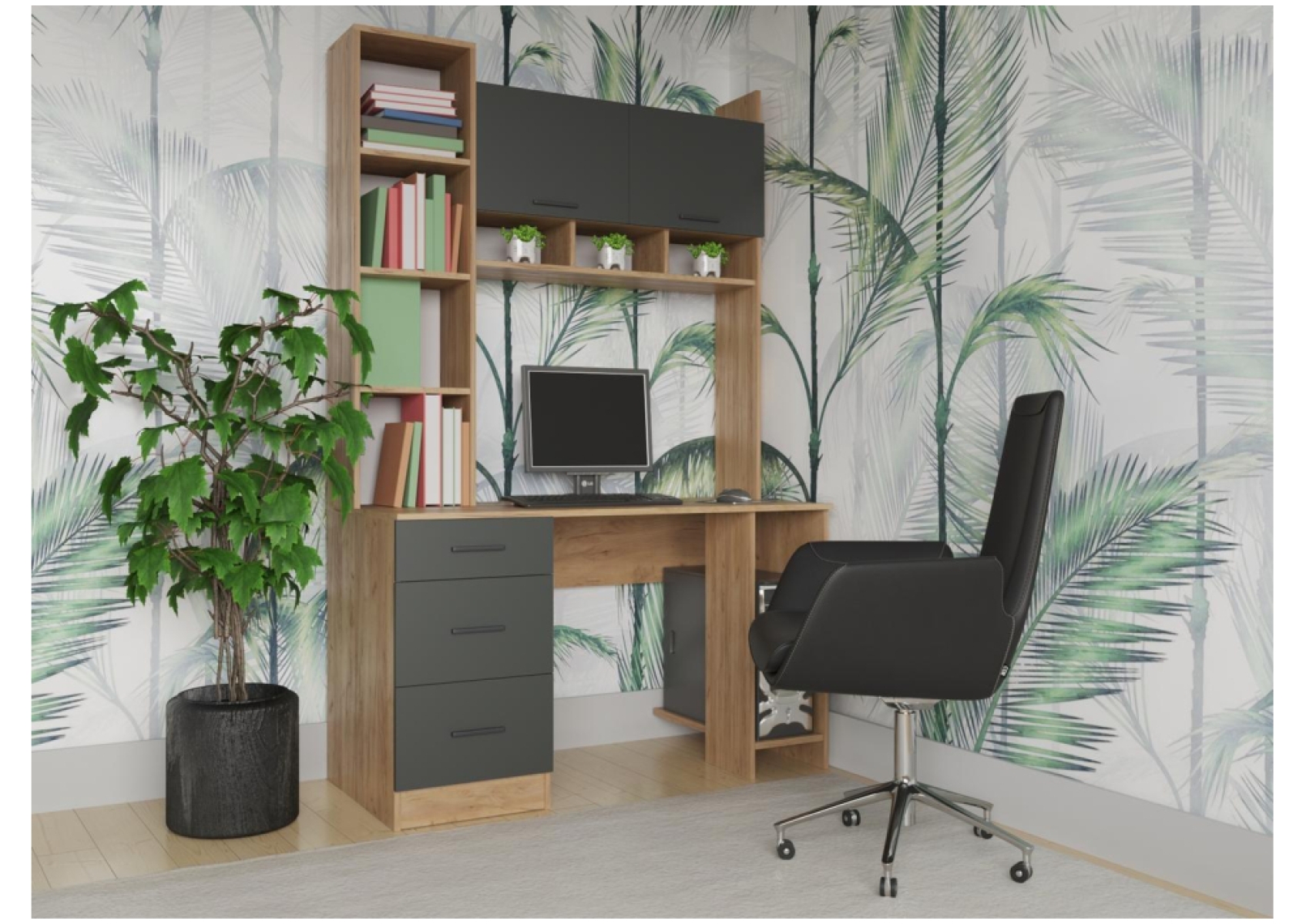 Компьютерный стол Бишоп 5 125х60х197 дуб крафт золотой / антрацит