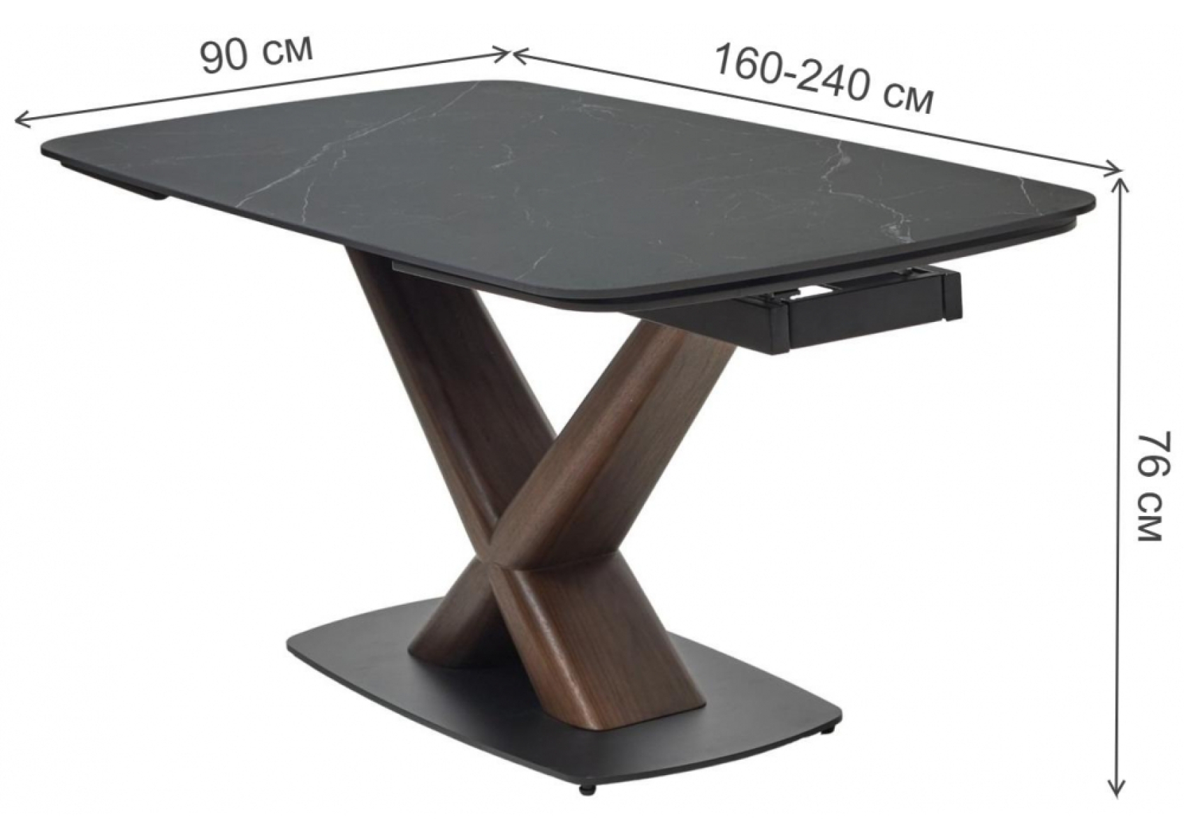 Керамический стол Blanco 160 matt black marble solid ceramic / орех
