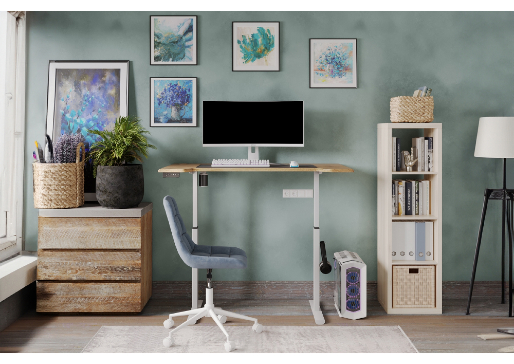 Компьютерное кресло Честер голубой (velutto 47 ) / белый
