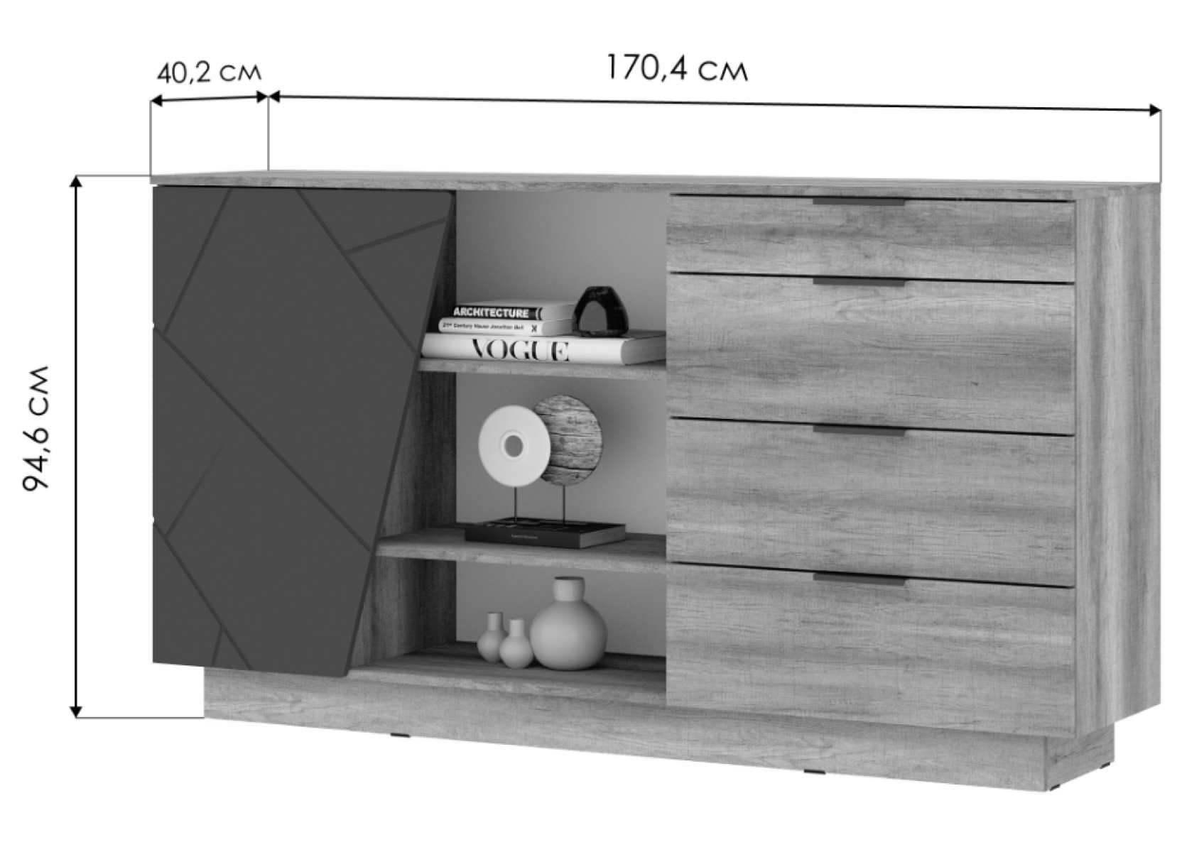 Комод Диамо КМ 01 софт графит / дуб каньон