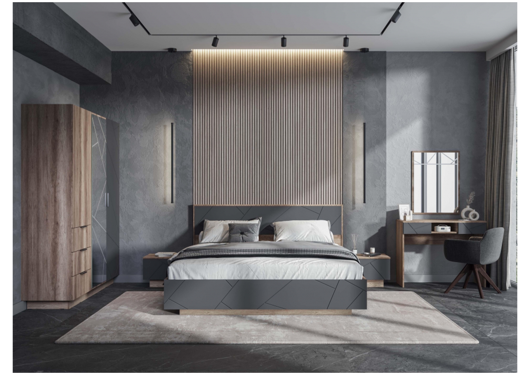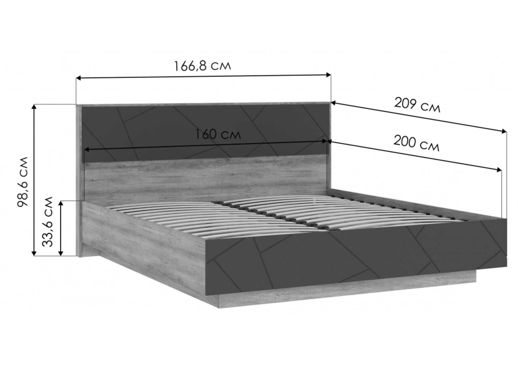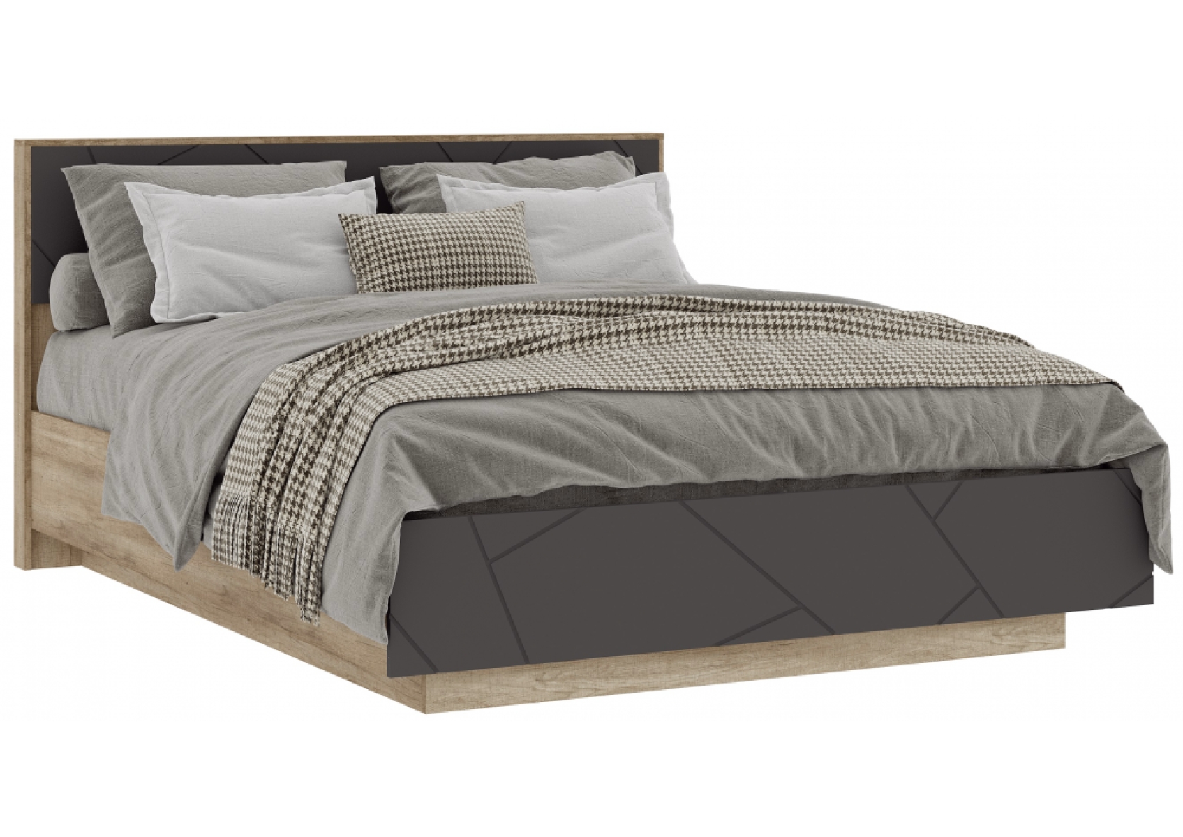 Двуспальная кровать Диамо КР 01 160х200 софт графит / дуб каньон
