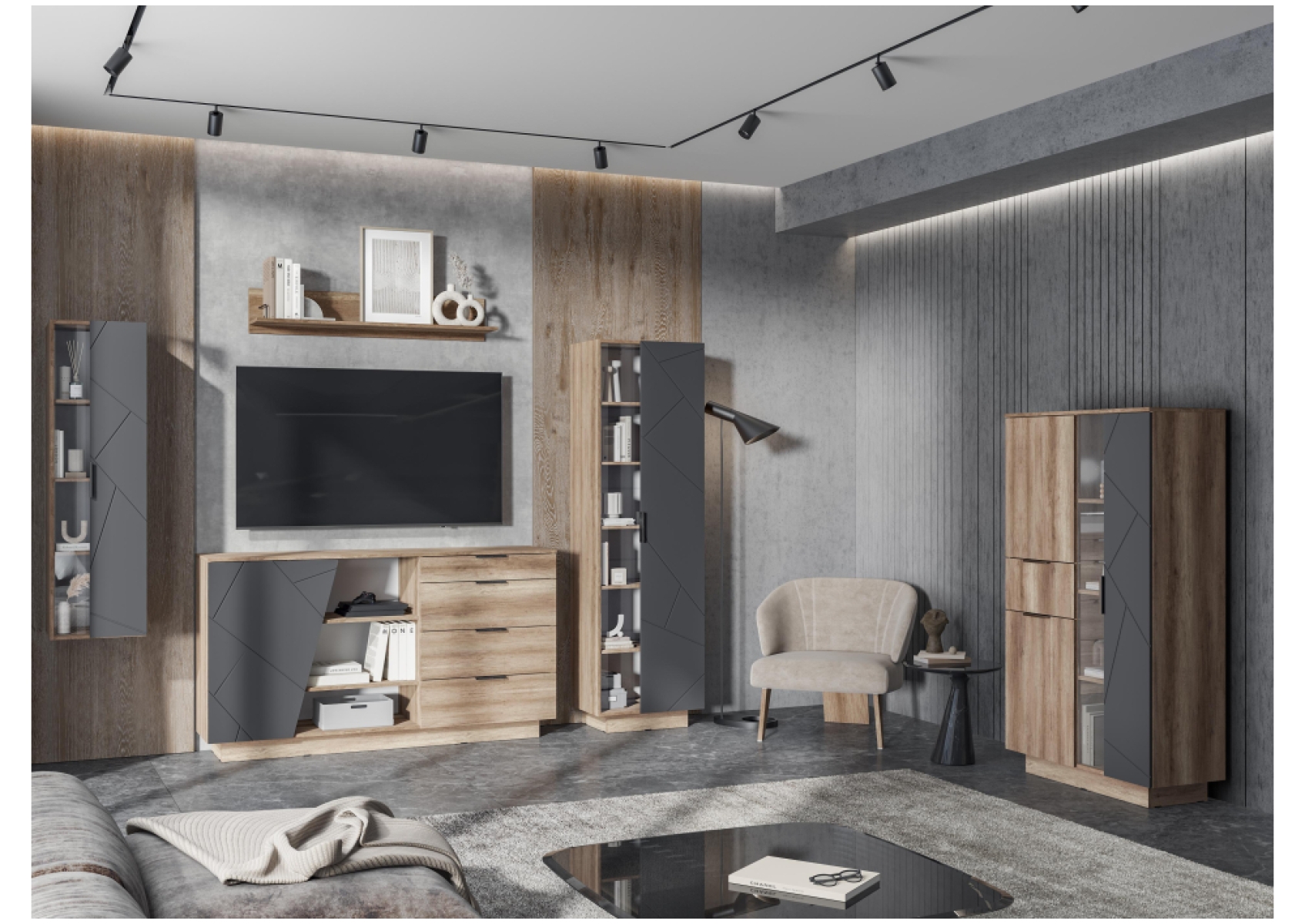 Витрина Диамо ШК 02 софт графит / дуб каньон