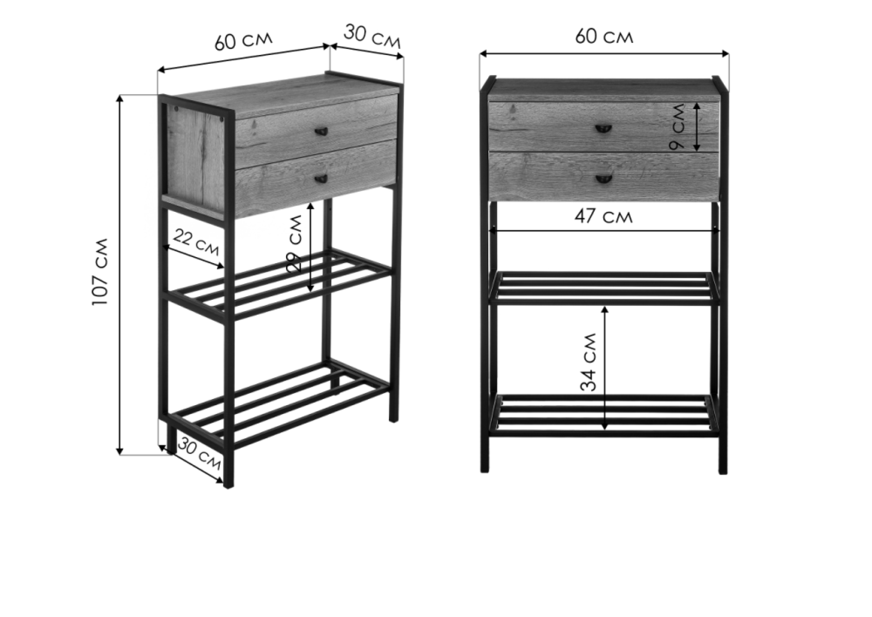 Обувница Диана дуб велингтон / черный матовый