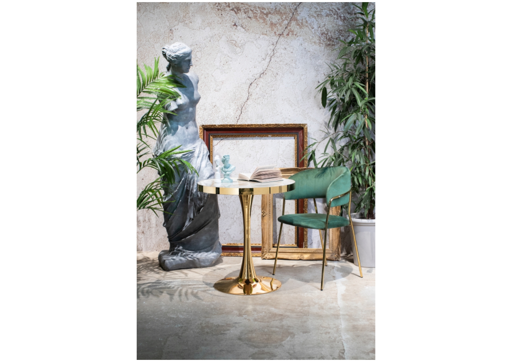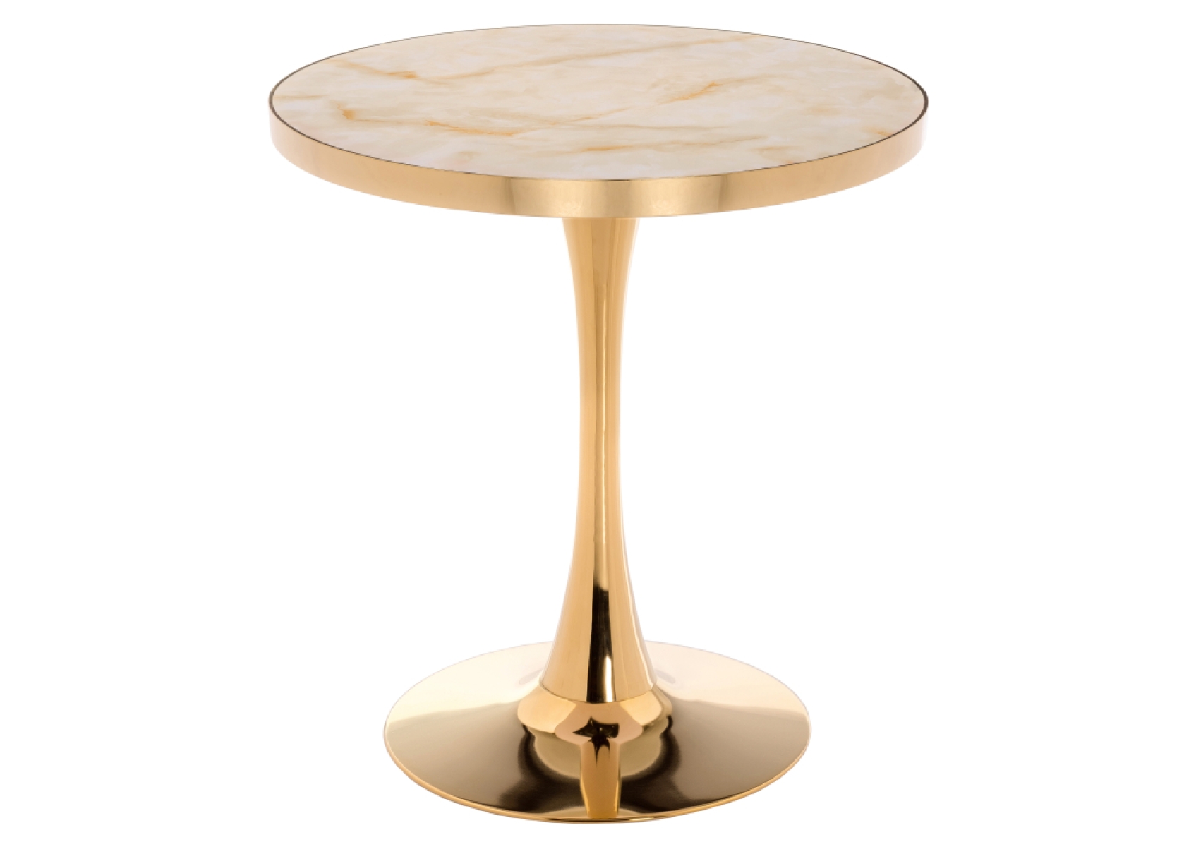Стол Dorian подойдет для размещения в зоне столовой или на кухне. Круглая форма и отсутствие острых краев обеспечат безопасность всем членам семьи, включая детей. У модели необычная конструкция: столешница фиксируется на толстой металлической ножке, плавно переходящей в широкое основание, размер которого почти совпадает с диаметром верхней части. Поверхность столешницы, имитирующая мрамор, гармонично сочетается с золотистым каркасом. Стол органично впишется в интерьер, выдержанный в современном стиле. Добавит сдержанного шика и функциональности любому жилому пространству. Столешница выполнена из МДФ. В основе материала лежит натуральная древесина. МДФ создается по новейшим технологиям, отвечает высоким стандартам качества и безопасности. Устойчив к попаданию воды, температурным перепадам в помещении, сухости, механическим повреждениям. Имеет достаточно низкую себестоимость. Верхняя часть столешницы покрыта акрилом. Материал прочен, устойчив к агрессивным воздействиям внешней среды. Отлично сохраняет первоначальный цвет в течение долгого времени. Гигиеничен, обладает антибактериальными свойствами. За акриловой столешницей легко ухаживать, применяя составы для полировки стекла. Металлокаркас обеспечит конструкции устойчивость и надежность. Металл - практичный материал природного происхождения, экологически чистый и абсолютно безопасный. Нейтрально переносит удары, выдерживает регулярные, достаточно высокие нагрузки. Прекрасно выглядит, при этом нуждается в простом уходе. Мебель из металла не нужно обрабатывать специализированными средствами. Достаточно стандартной очистки