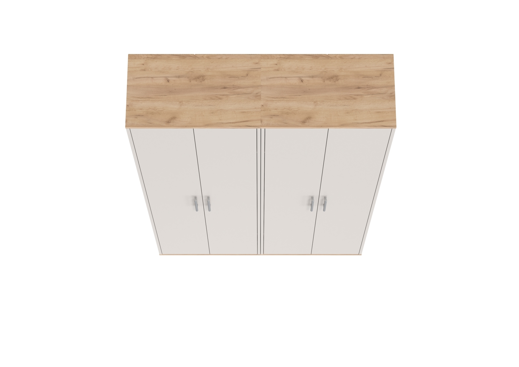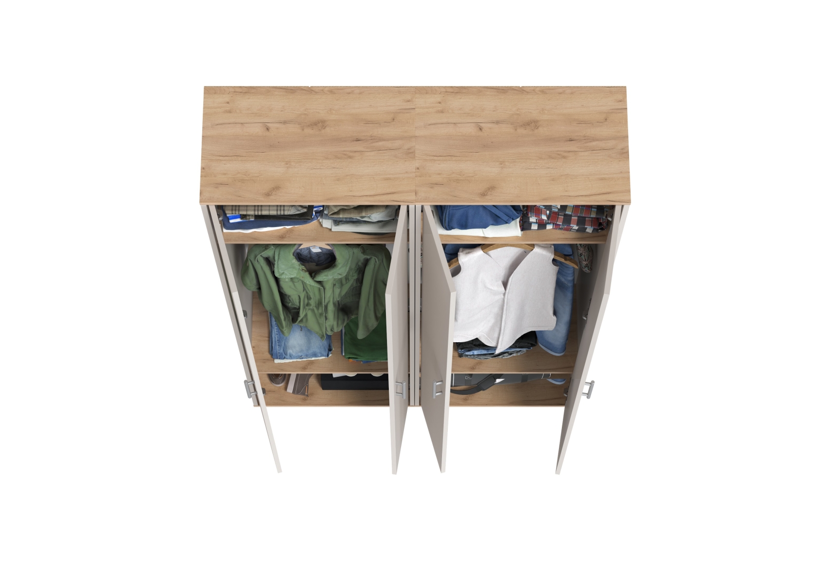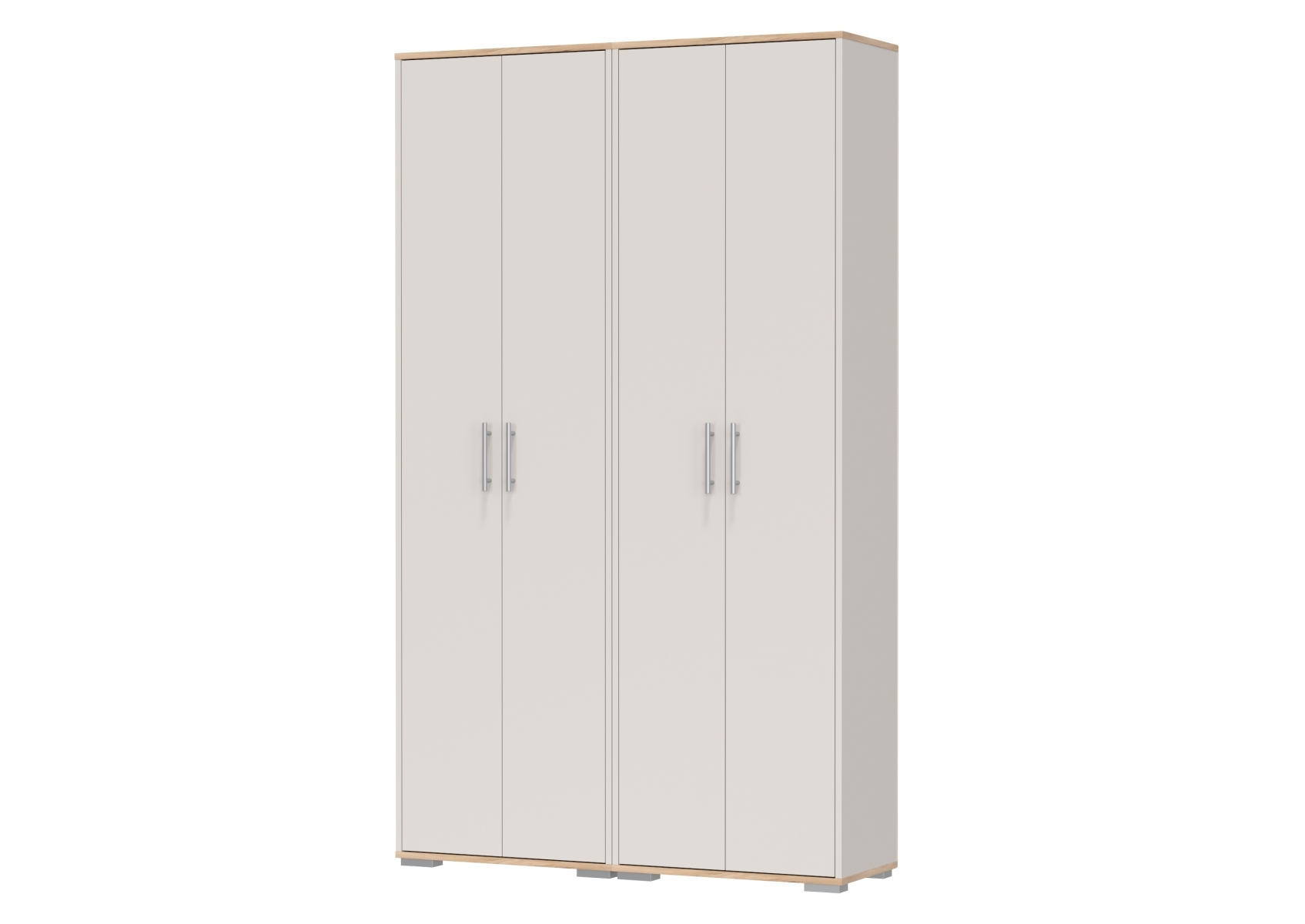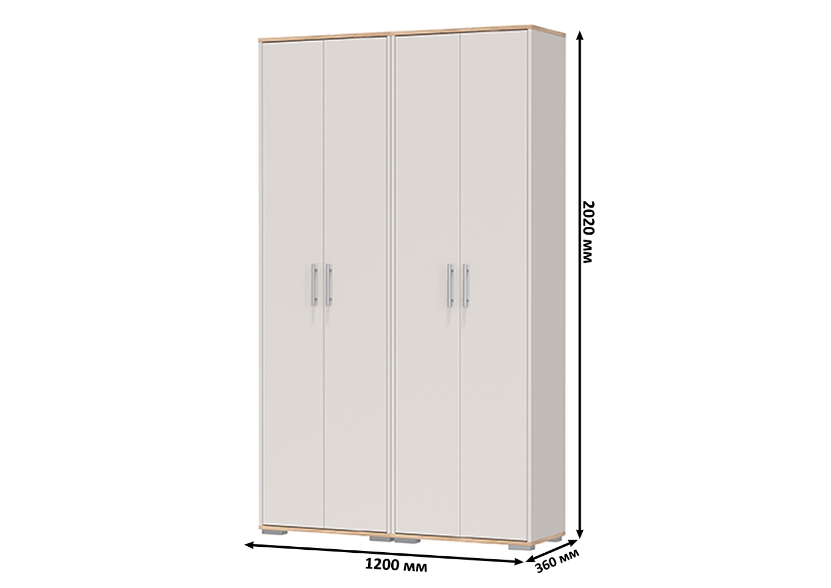 Два шкафа для одежды в прихожую Домино 2-3430. Цвет - дуб крафт золотой/кашемир серый. Габариты (ШхГхВ) 120х36х202 см. В комплектации два шкафа Домино 2-3430. Каждый состоит из закрытого двумя распашными дверками отделения для одежды. Шкаф оборудован штангой для вешалок, антресольной полкой для головных уборов и нижней полкой, выделяющей нишу для обуви.
